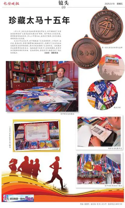 上图为2025年9月19日《太原晚报》专版,介绍笔者收藏马拉松奖章的《珍藏太马十五年》