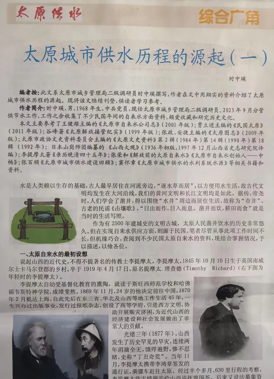 上图为2023年10月31日《太原供水报》载笔者文章《太原城市供水历程的源起》