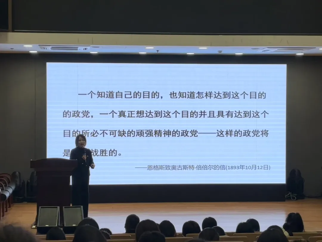 她立足党的创新理论,以深入浅出的阐释、贴近青年的视角,简要回顾了过去五年国家取得的伟大成就,将宏大叙事转化为可感可知的生活场景与发展实例,让在场学子深刻体会到时代发展与个人成长的紧密关联。