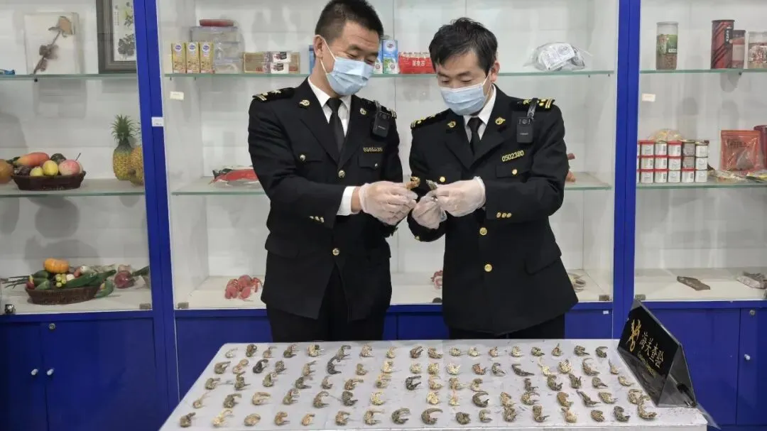 日前,太原海关所属太原机场海关关员在监管进境旅客托运行李时,发现1名经无申报通道通关的旅客的行李机检图像异常,随即进行拦截检查。经查,在行李内发现海马干87尾,重300克。海马所有种均为《濒危野生动植物种国际贸易公约》(CITES)附录Ⅱ所列濒危物种,也属于国家二级保护动物。