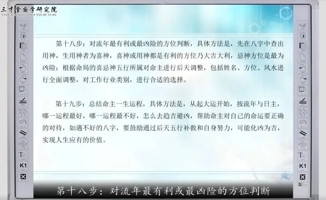 宋惠彬初中级视频课课程截图,八字推断第十八步判断吉凶方位、第十九步总结运程。