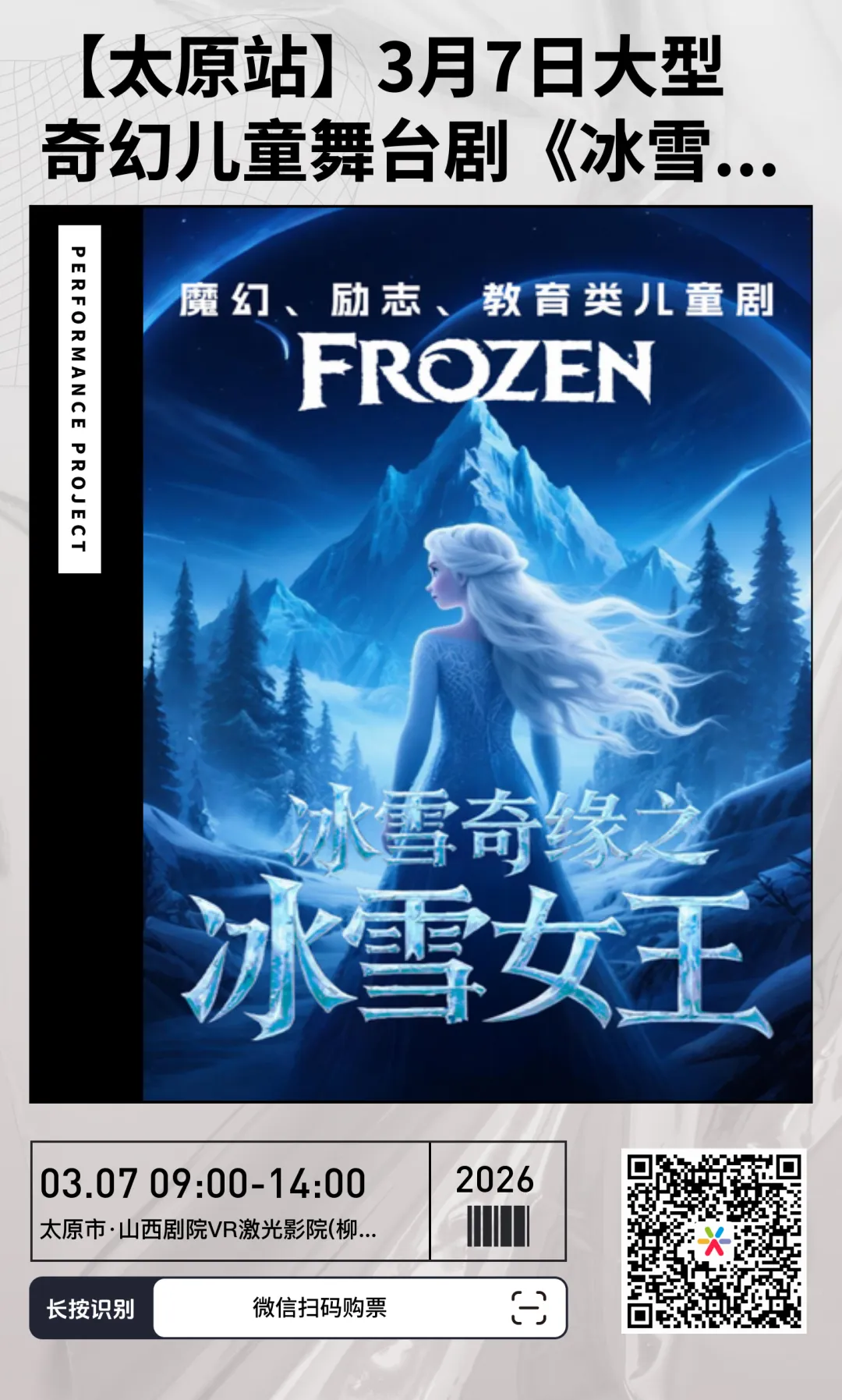 >太原|大型奇幻儿童舞台剧《冰雪奇缘之冰雪女王》3月7日山西剧院上演,早鸟票优惠中!