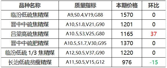 4.市场价格主要为中国太原煤炭交易网自动成交交易价格,个别为企业报价(坑口含税)。