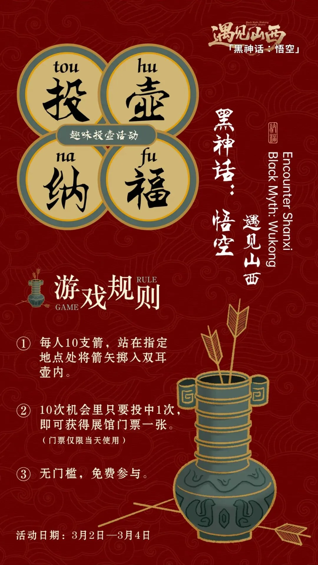 🎯【投壶赢门票・人人有机会】