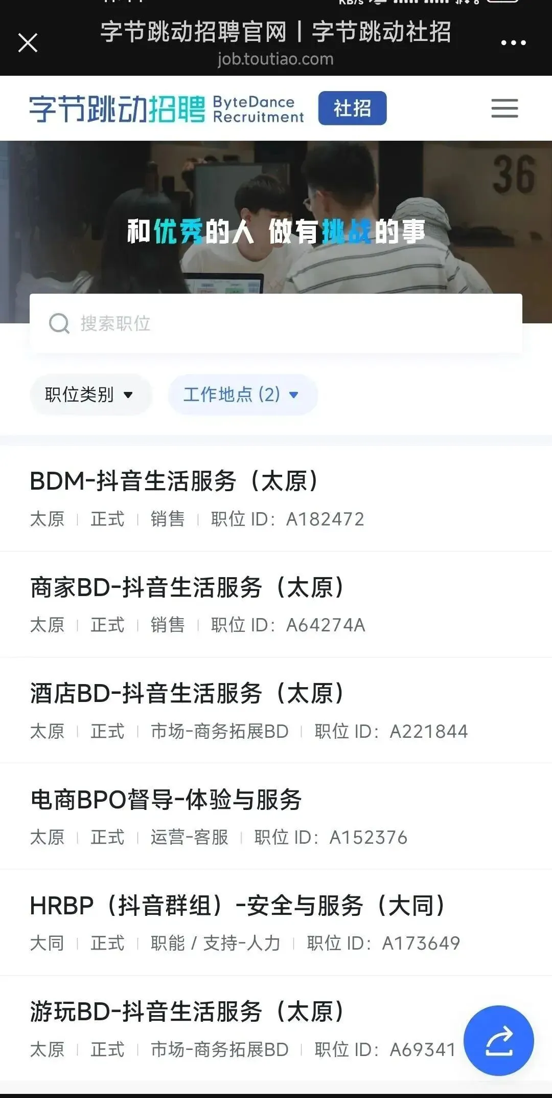 当前位置:首页>太原>字节跳动太原招聘