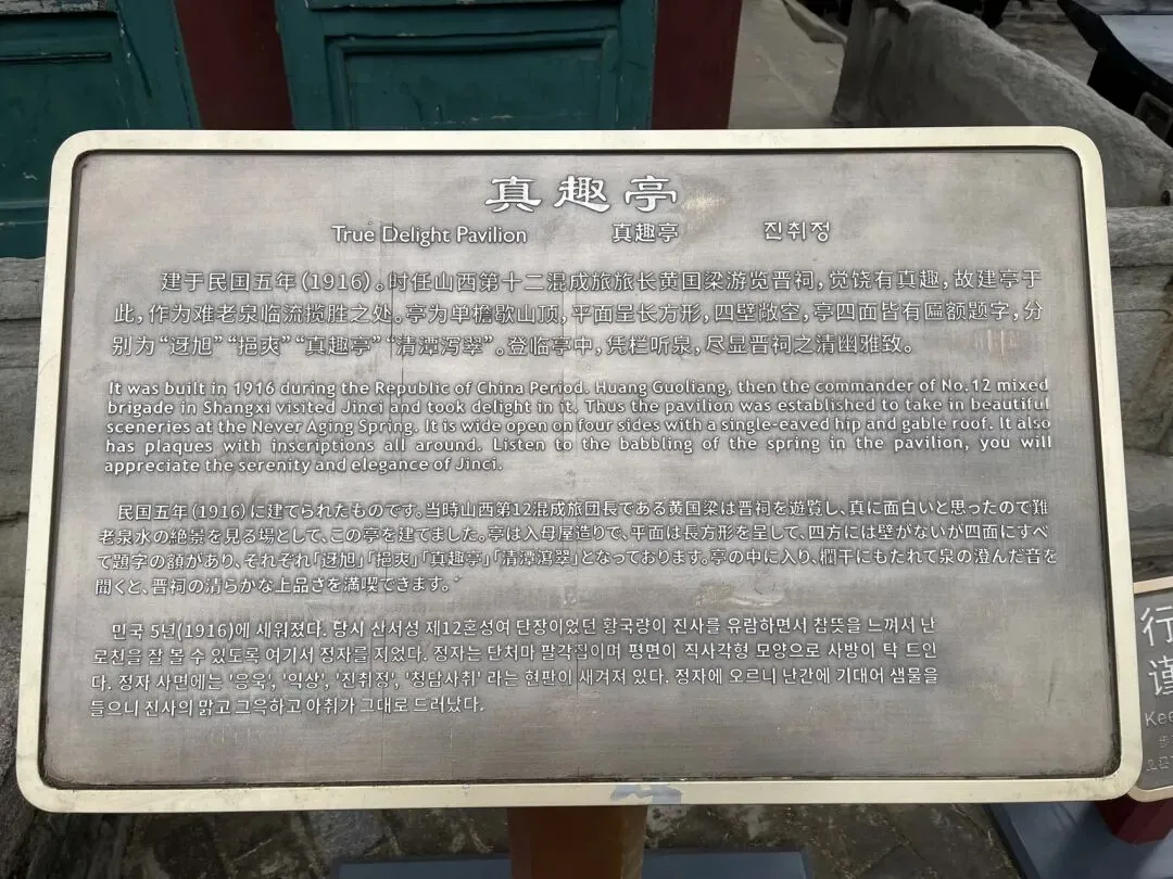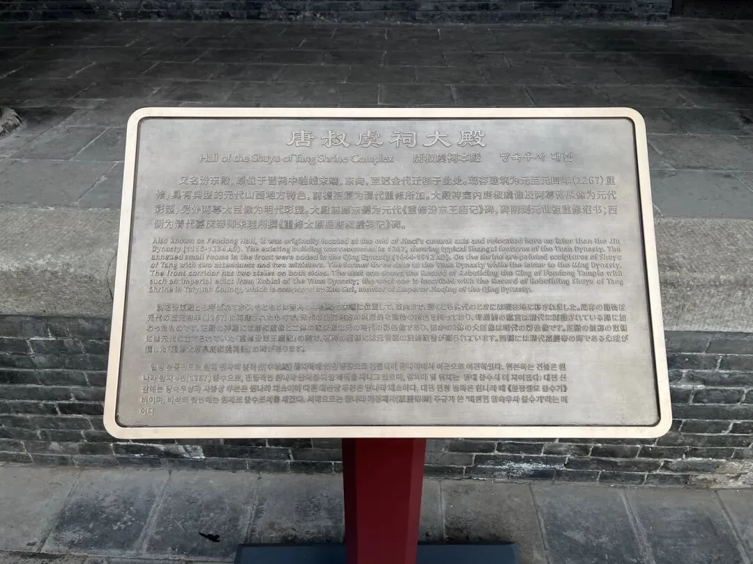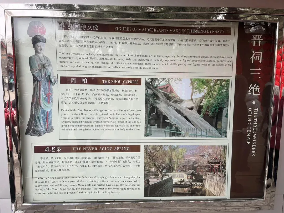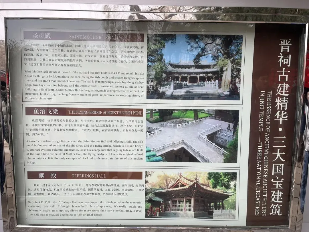 晋祠是中国现存最早、规模最大、跨越时间最悠久的皇家祭祀园林,晋国宗祠;是中国古代建筑艺术的集约载体,国内宋元明清至民国本体建筑类型、时代序列完整的孤例,附属彩塑壁画碑碣均为国宝;是集中国古代祠祀建筑、园林、雕塑、壁画、碑刻艺术为一体的珍贵的历史文化遗产,被誉为“中国古建筑博物馆”,是三晋历史文脉的综合载体,晋文化系统上溯西周封唐建晋至盛唐肇创文脉传承的实证;是世界王氏、张氏、唐氏、晋氏的发源地。其中难老泉、晋祠圣母殿侍女像、周柏被誉为“晋祠三绝。溜达完乔家大院,当天下午就直奔山西太原晋祠,开车大概需要一个小时左右,入住晋祠宾馆,晋祠宾馆的环境非常好,办理完入住后去吃了晚餐,吃完饭在晋祠宾馆里面看了看夜景。