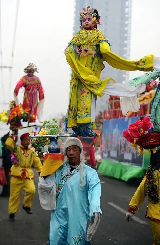 其中,背棍、铁棍是太原特有的社火形式:背棍由一名成年男子背负铁架,铁架上站立一名儿童演员,扮演戏曲或神话人物;铁棍则由多人抬着长杆,杆上站立多名儿童,演员身着古装,造型精美,被誉为“空中舞蹈”。社火展演吸引数万市民观看,是太原春节文化的核心内容之一。