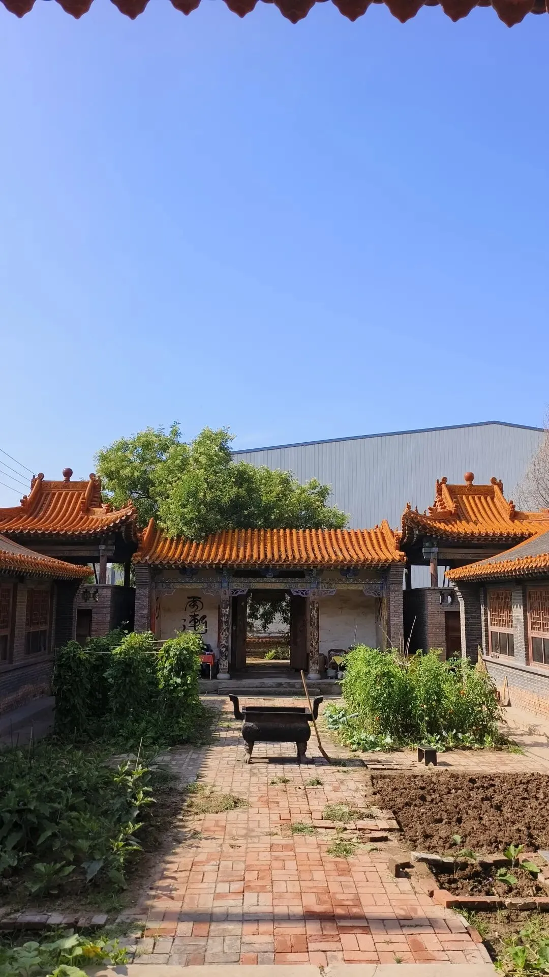 入内一进小院,正殿居中,塑关公金身,院内两旁空地成为了菜园子,颇有生活气息。