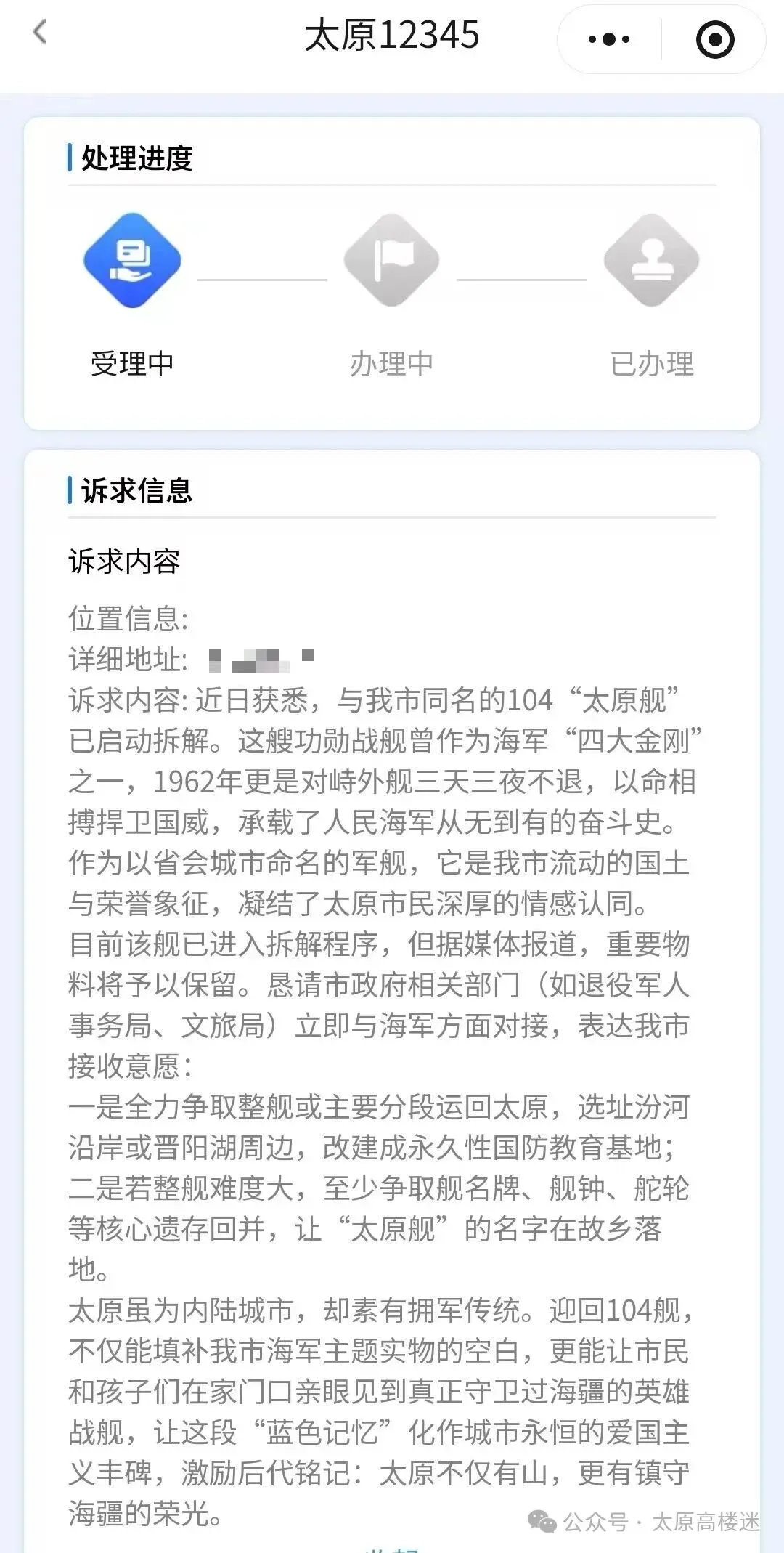 太原虽为内陆城市,却素有拥军传统。迎回104舰,不仅能填补我市海军主题实物的空白,更能让市民和孩子们在家门口亲眼见到真正守卫过海疆的英雄战舰,让这段"蓝色记忆"化作城市永恒的爱国主义丰碑,激励后代铭记:太原不仅有山,更有镇守海疆的荣光。
