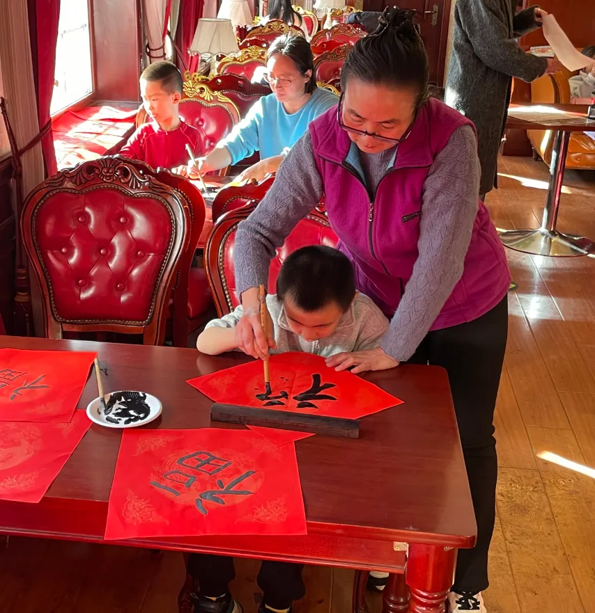 大手握小手,一笔一画皆是温情;红纸映笑颜,一字一句满含祝福。孩子们认真学习握笔姿势、笔画结构,家长在旁悉心陪伴、耐心示范,亲子协作间,既有传统文化的浸润,更有亲情陪伴的温暖。一个个端庄大气、灵动可爱的“福”字跃然纸上,承载着对新年的美好期盼,也书写着家庭和睦、家风淳厚的文明愿景。不少家庭将写好的福字现场展示、互相分享,现场欢声笑语不断,年味与文明味交融共生。