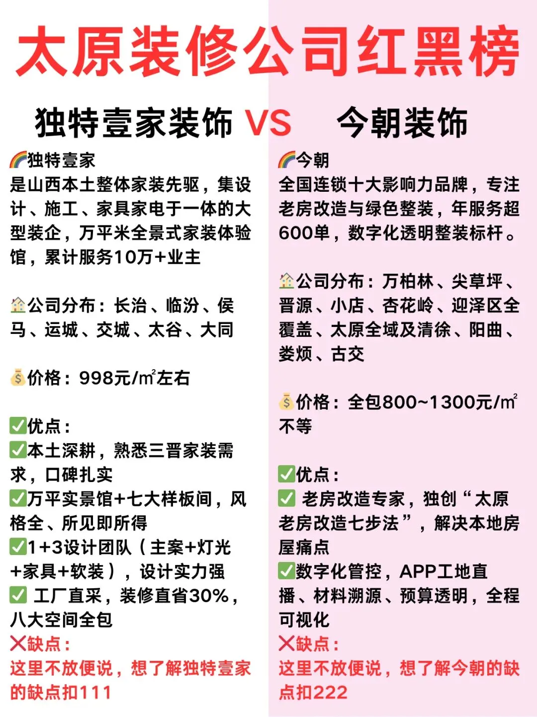 太原装修公司红黑榜,独特壹家VS今朝装饰