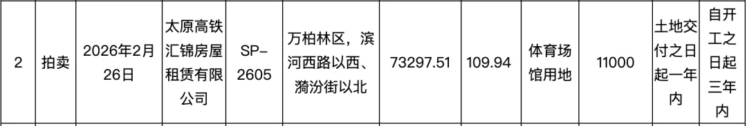 太原高铁汇锦房屋租赁有限公司以底价拍得该地块。