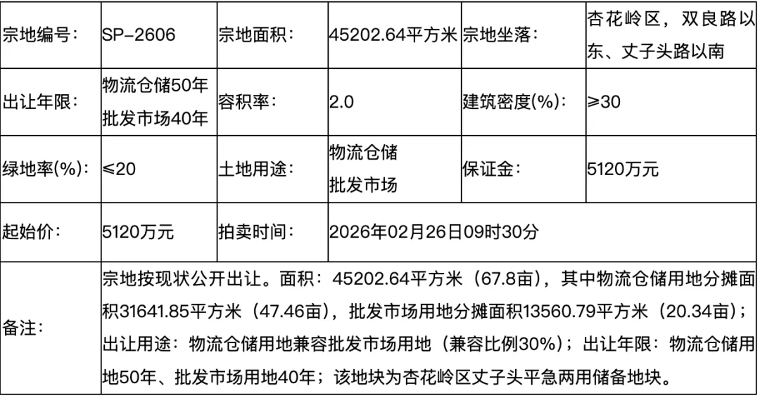 SP-2606宗地面积45202.64平方米,宗地坐落于杏花岭区,双良路以东、丈子头路以南。