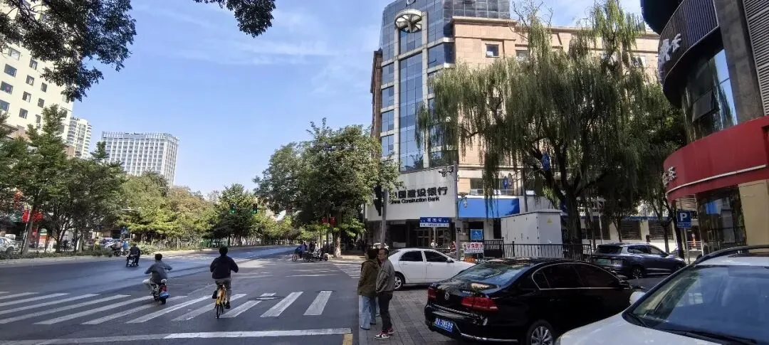 下图中的大楼是学校西侧的新建南路对面的“老军营”商场,以前经常来光顾这里买东西。这里顺便科普一下,太原的道路普遍都很宽很直,真感谢以前的超前意识的规划。道路命名也很有规律,南北方向为“路”,东西方向为“街”,非常科学。