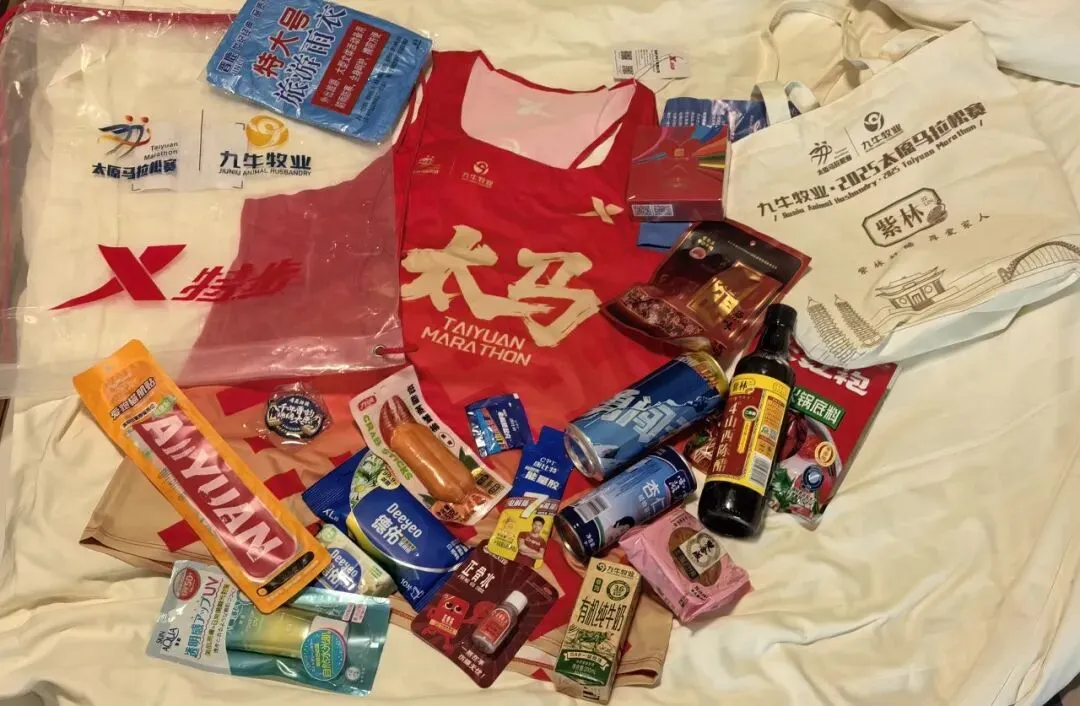 晚上20:25接到大学的兄弟(应他本人的意愿,此处就不提姓名及样貌,保留神秘感吧)的电话,称他也中签,本来已经因家族中办喜事而放弃不来太原参加的了,但看到我前一天在朋友圈发出的信息就连夜坐高铁中转西安过来,来电前才到会展中心领完物资,并约好第二天完赛后见面叙旧。冲完凉躺床上就渐渐地感觉到双腿的不舒适越发严重,幸好这次随身带了消炎镇痛药膏,马上在双膝贴上好几片。虽然未到10点就躺下,但过了好一阵才能睡得进去。
