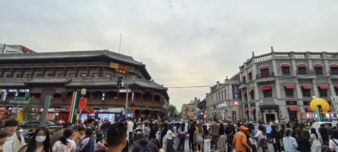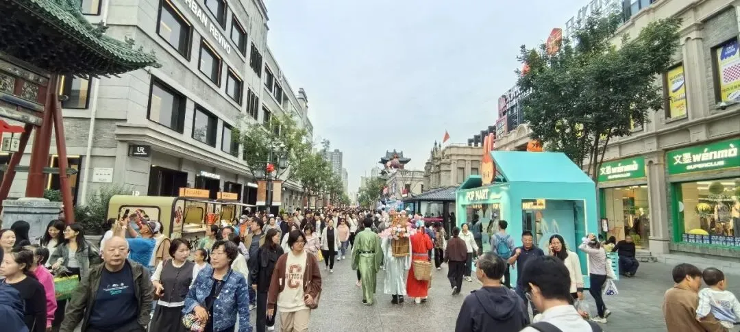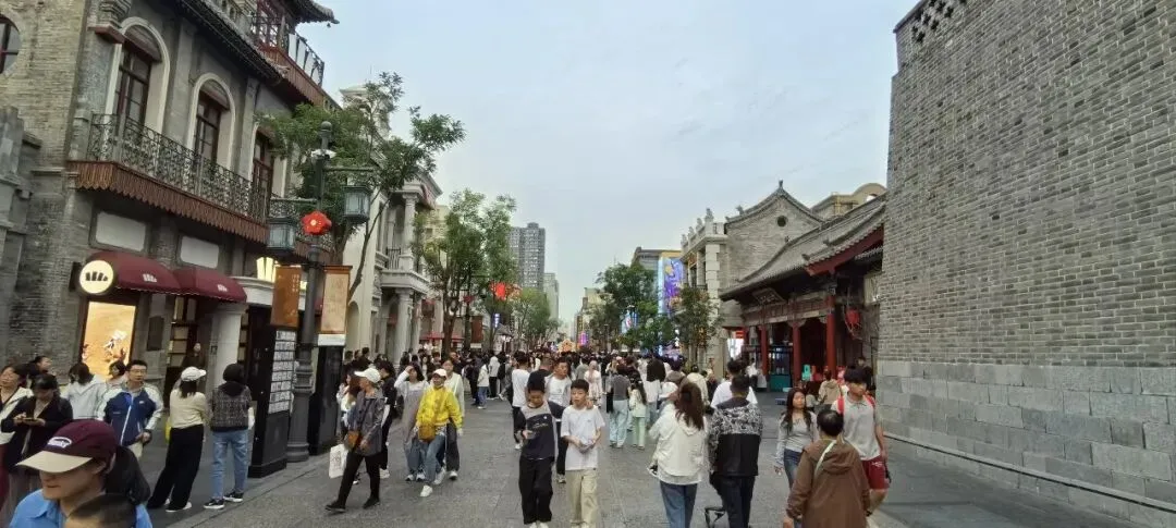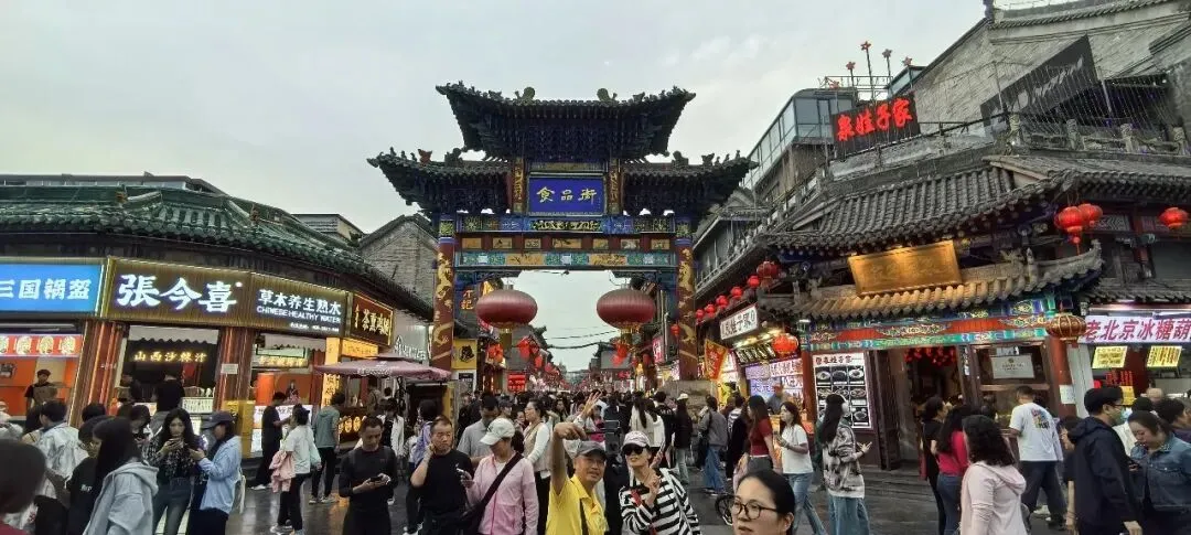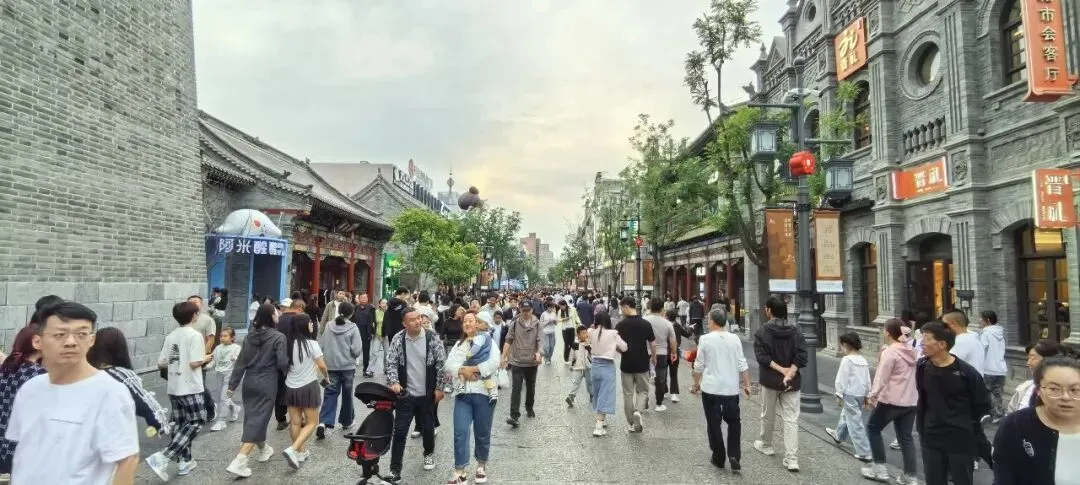 由于考虑时间有限就先不进公园游览了。到达广场转了几圈后,收到太原的同学在微信上发来信息建议可以到钟楼街逛逛,而钟楼街挨着柳巷,离五一广场很近。随后就步行逛了柳巷和钟楼街,这里人太多,走动起来很不方便,看着天色不早了,就再步行回南内环街一带。