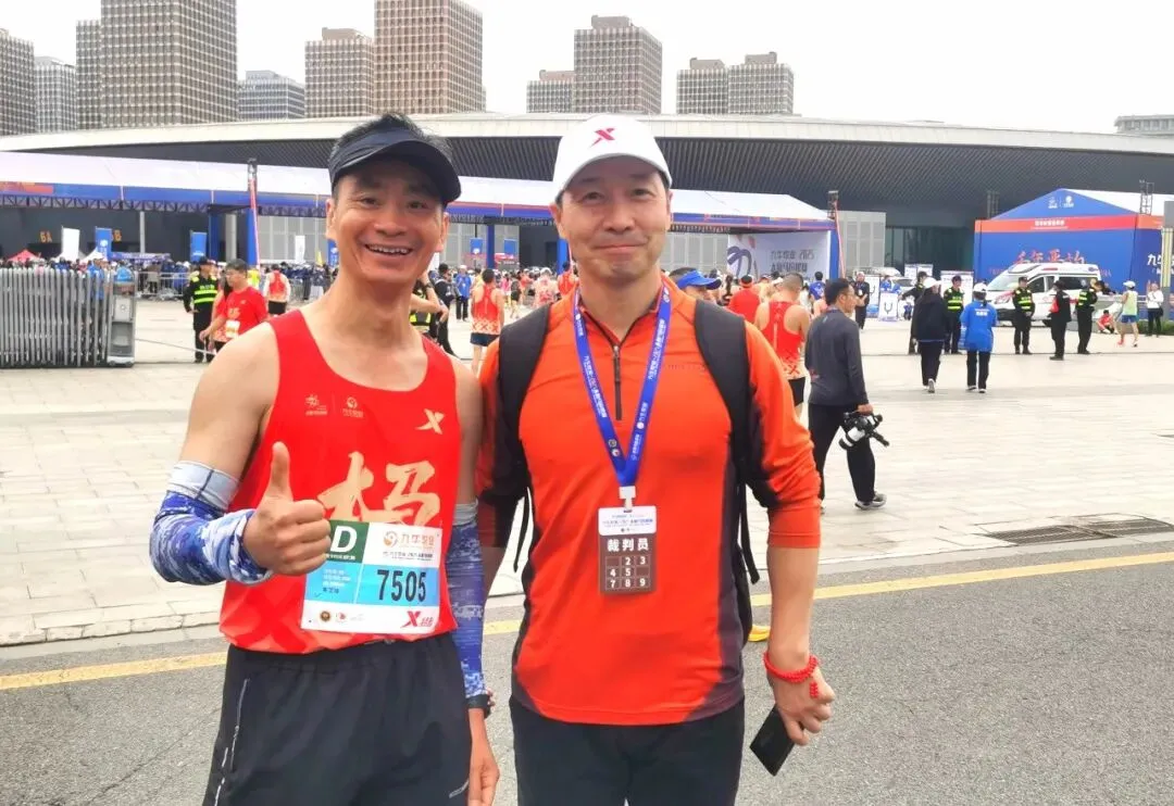 冲过终点后,找到孙老师(当天他是负责女子半马计时引路车上的随车裁判,所以很早就在终点处等我),领了完赛包并拿回存包后就在那里边拍照边等我的同学。