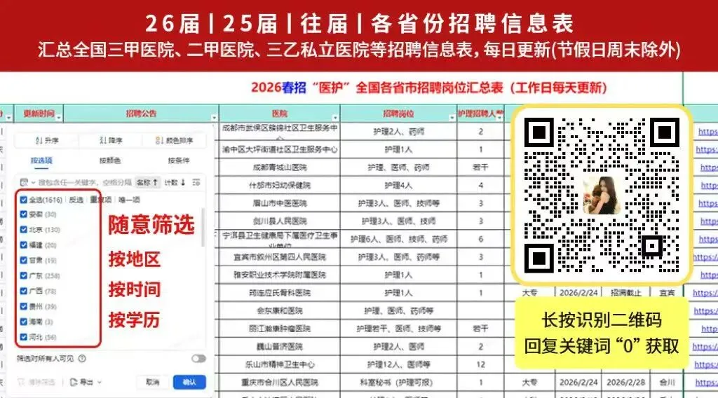 以上人员签订劳务派遣合同,纳入医院统一管理,入职缴纳社保,提供单身宿舍、就餐补助、免费体检、免费进修培训等。详细情况可到现场或通过邮箱咨询。
