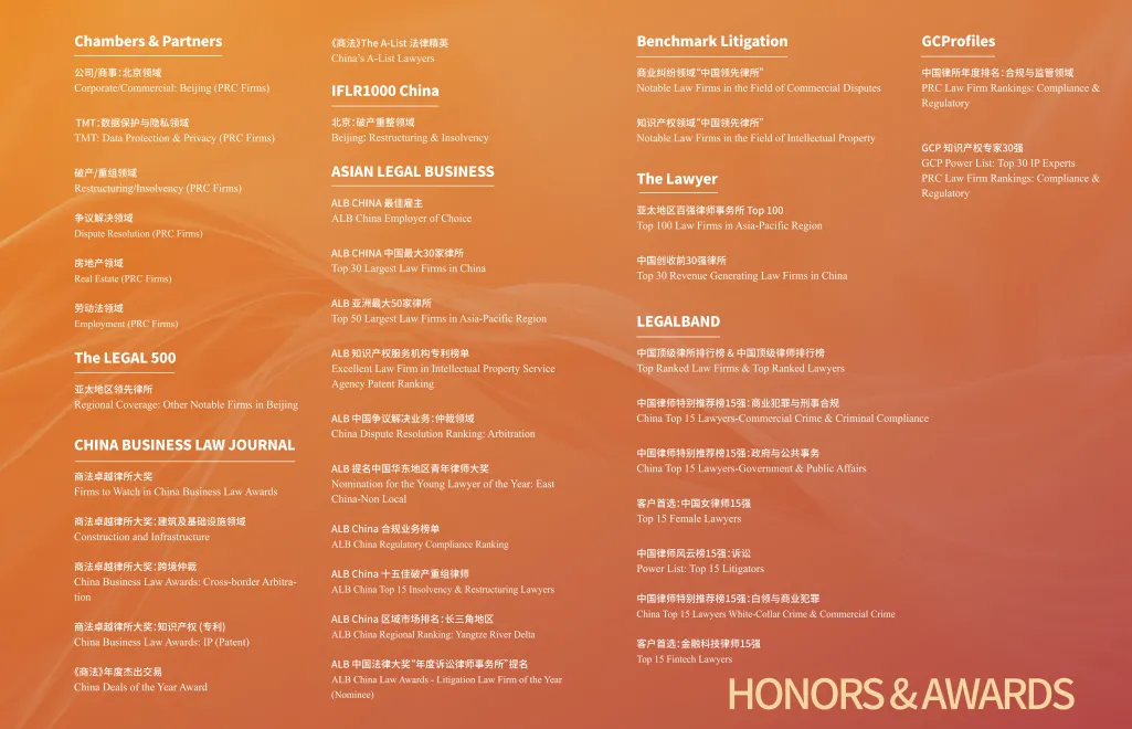 (3)本所合伙人分为专业合伙人与权益合伙人,两类合伙人享有同等提成比例。其中,专业合伙人以专业深耕为核心,须在某一专业领域(如公司法、知识产权、金融证券、破产重组、争议解决等)业绩突出,具备行业影响力,以专业深度铸就律所核心竞争力;权益合伙人则以业务创收为导向,须具备稳定的业务资源和卓越的市场开拓能力,以业绩实力驱动律所持续发展。