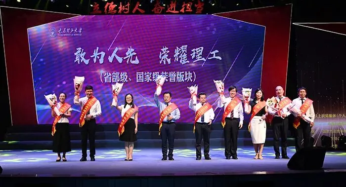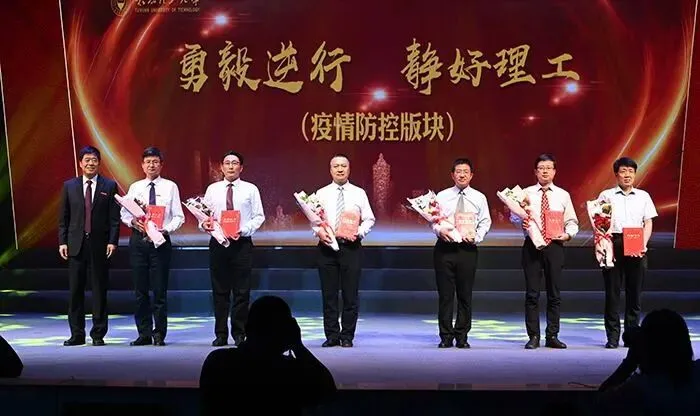 大会分为“德才兼备 奋进理工”——“三育人”板块、“勇毅逆行 静好理工”——疫情防控表彰板块、“敢为人先 荣耀理工”——省部级、国家级荣誉板块等三个板块,分别对本科生院教务处等5个“三育人”先进集体、刘东霞等15名“三育人”标兵、保卫处等3个疫情防控工作先进集体、桑胜波等6名疫情防控工作先进人物及14名疫情防控期间网络教学一等奖获得者予以表彰,与会校领导为获得表彰的先进集体和个人颁发了奖牌和证书,学生代表向2019—2020年获得省部级、国家级荣誉称号的集体(个人)代表敬献了鲜花。