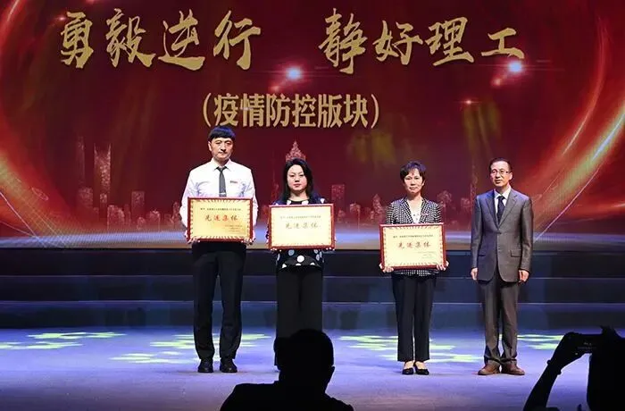 艺术学院副院长刘东霞、保卫处负责人师红军作为获奖代表分别发言,分享了自己教书育人和参与一线抗疫的心得体会。
