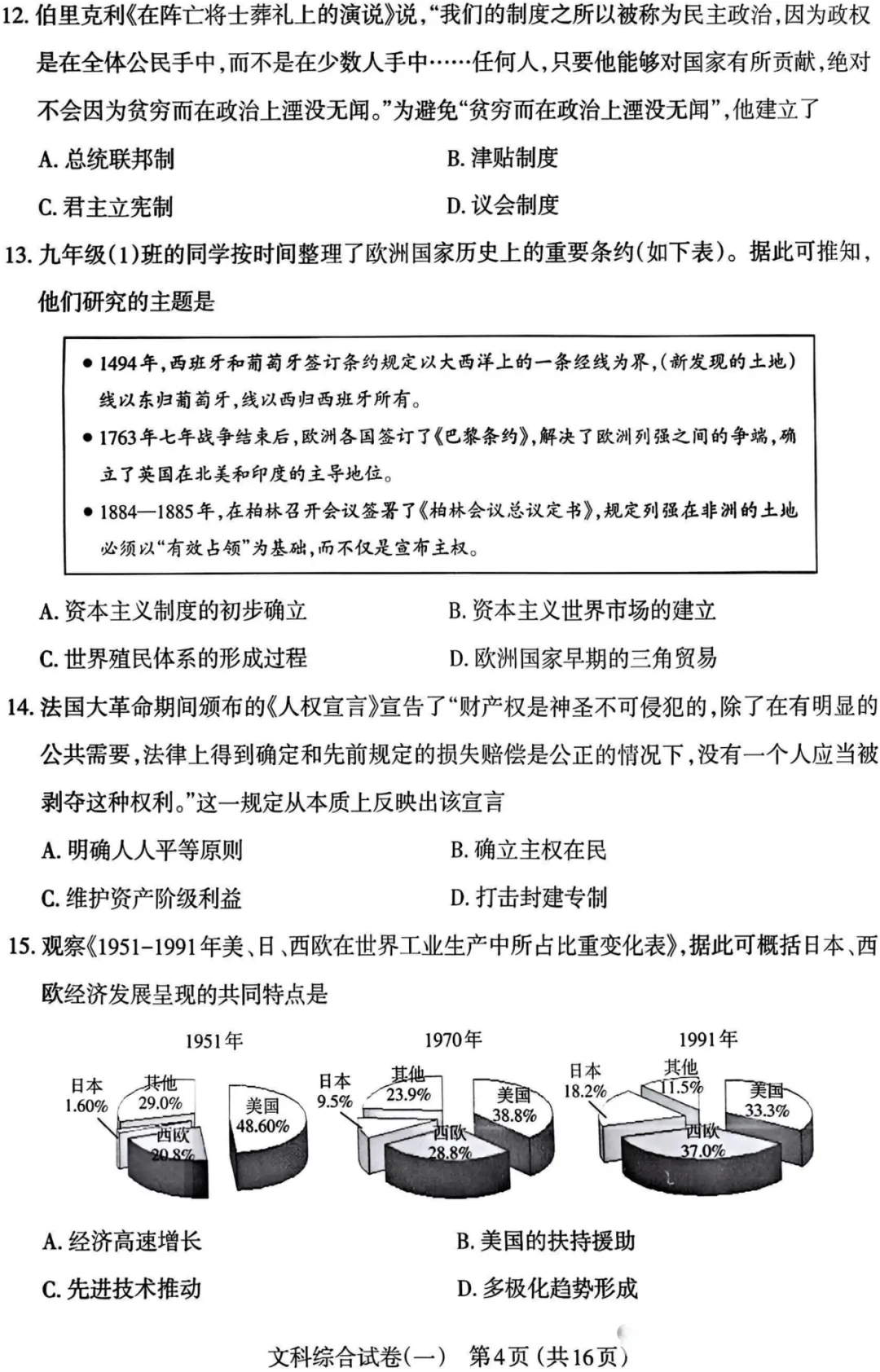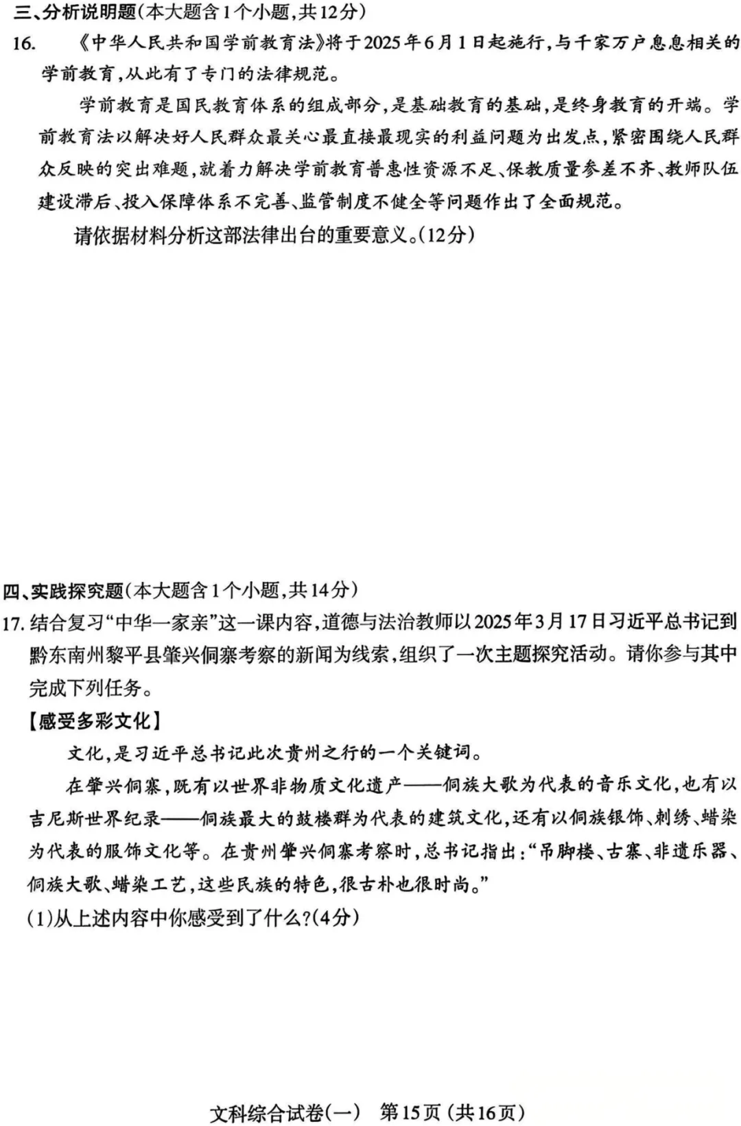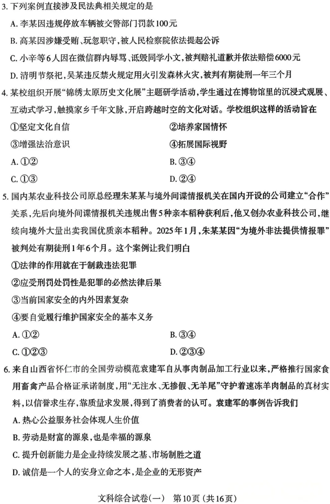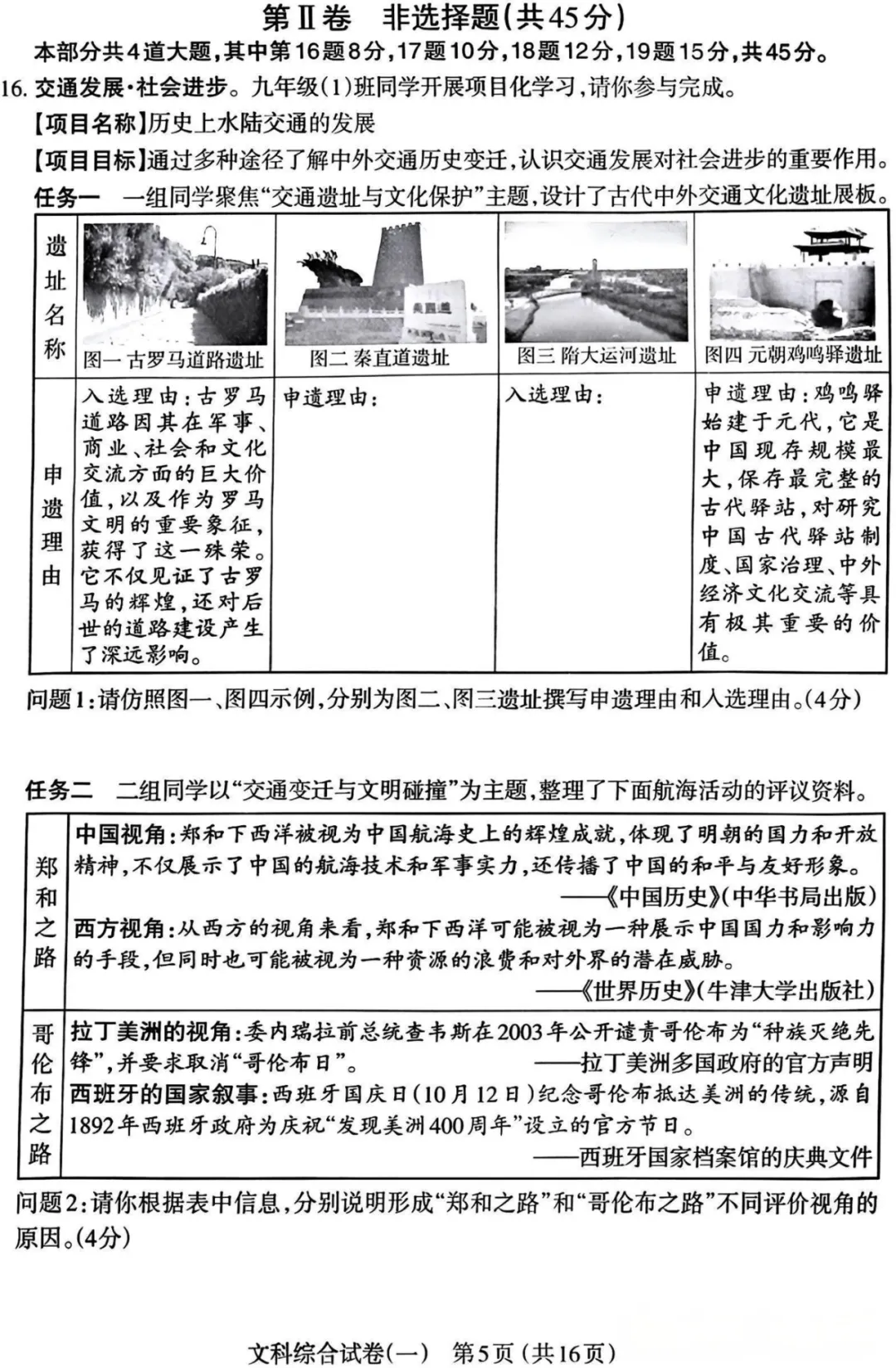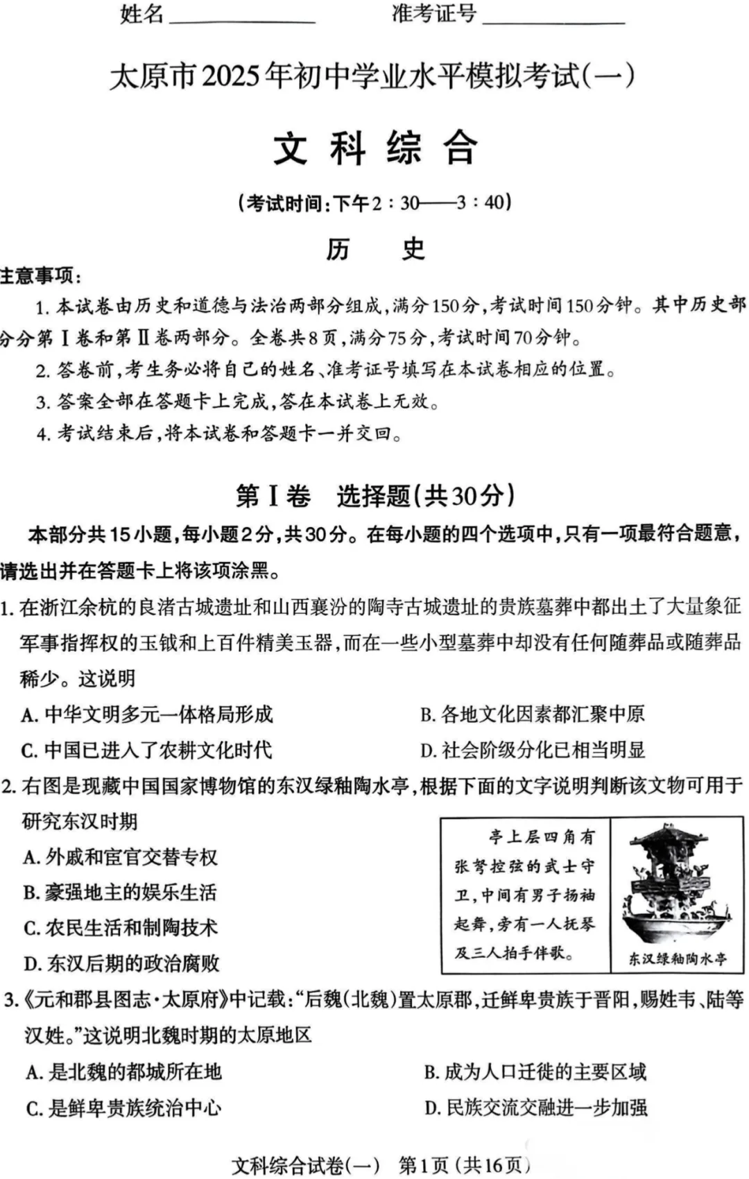 >【文综】太原市2025年初中学业水平模拟考试(一)