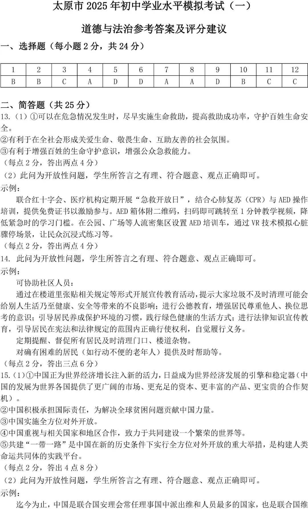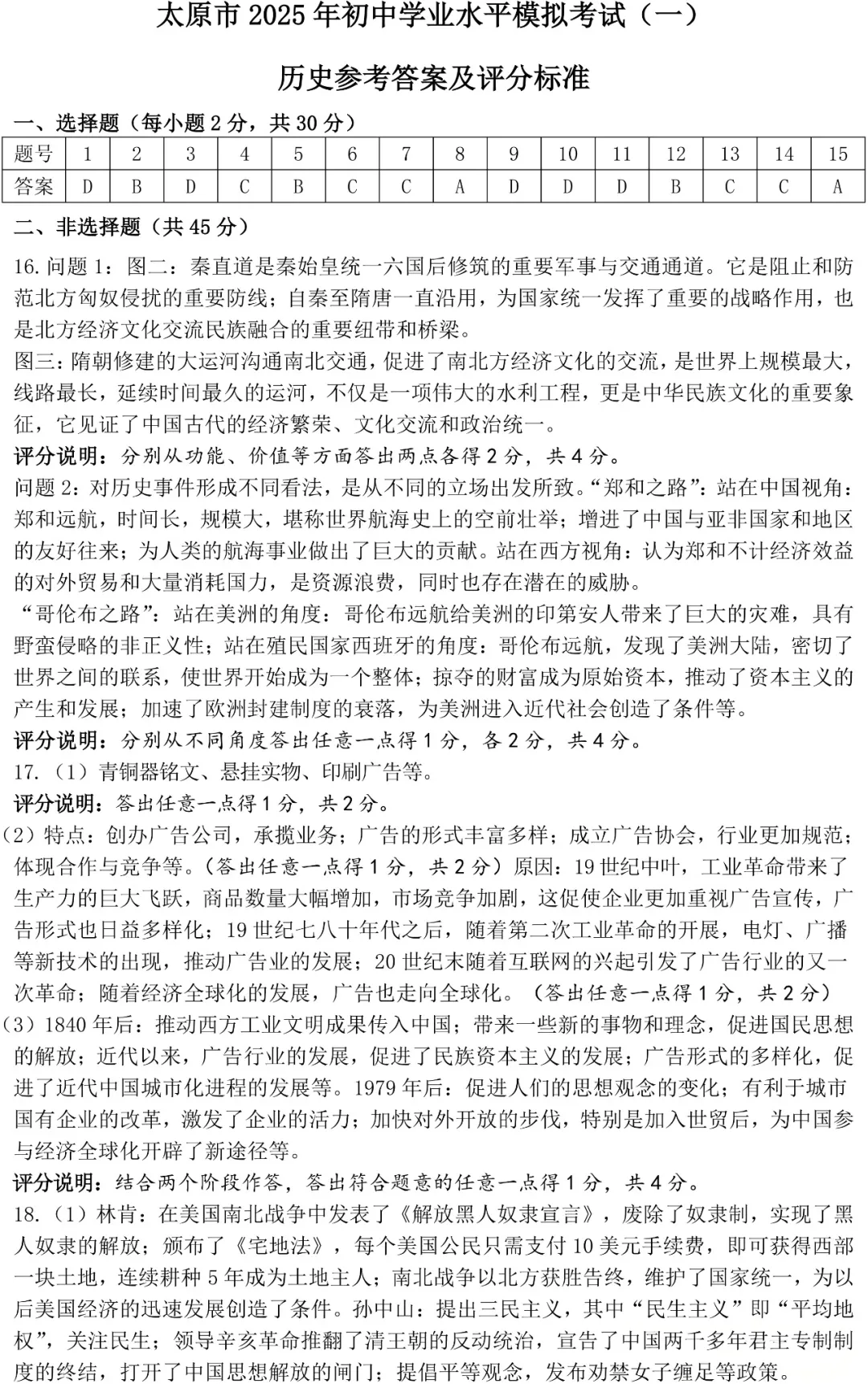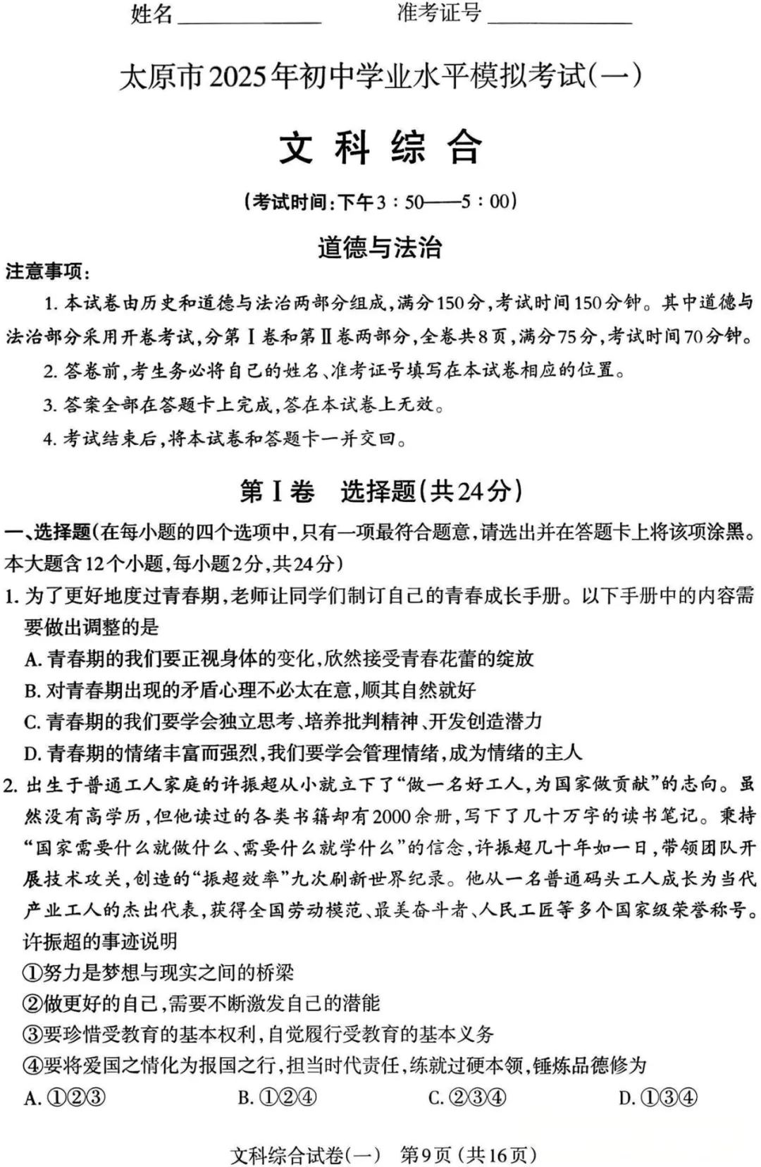 【文综】太原市2025年初中学业水平模拟考试(一)