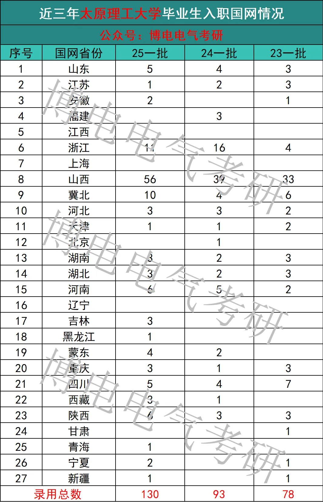 近三年太原理工大学毕业生入职电网情况如下:25届一批共计130人入职国网,24届共计93人,23届共计78人!入职国网最多的公司当属山西电网!
