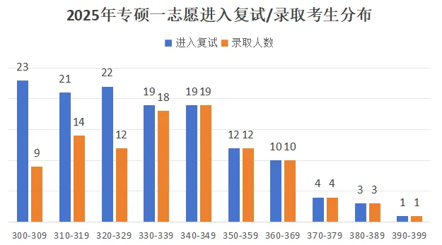 普通专硕录取考生中,最高分为396分。最低分为316分,平均分为347分。