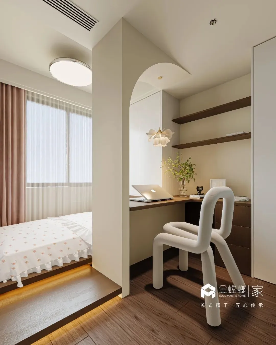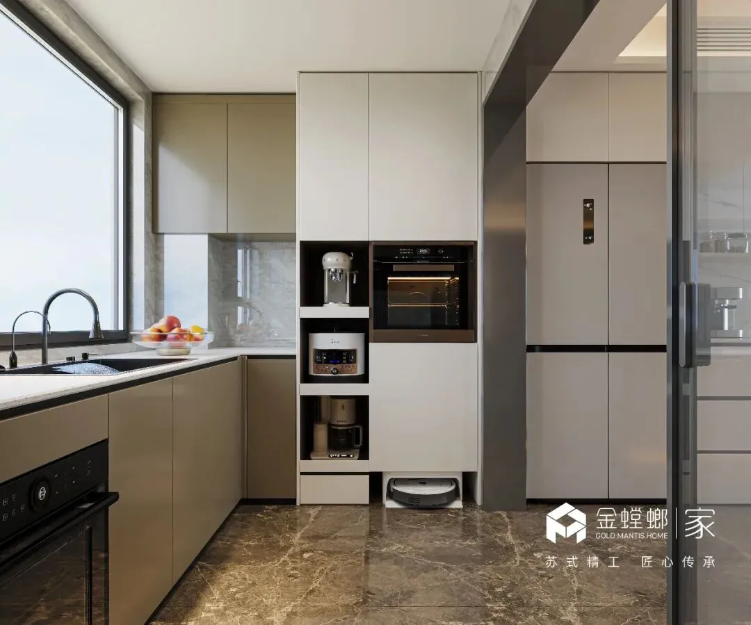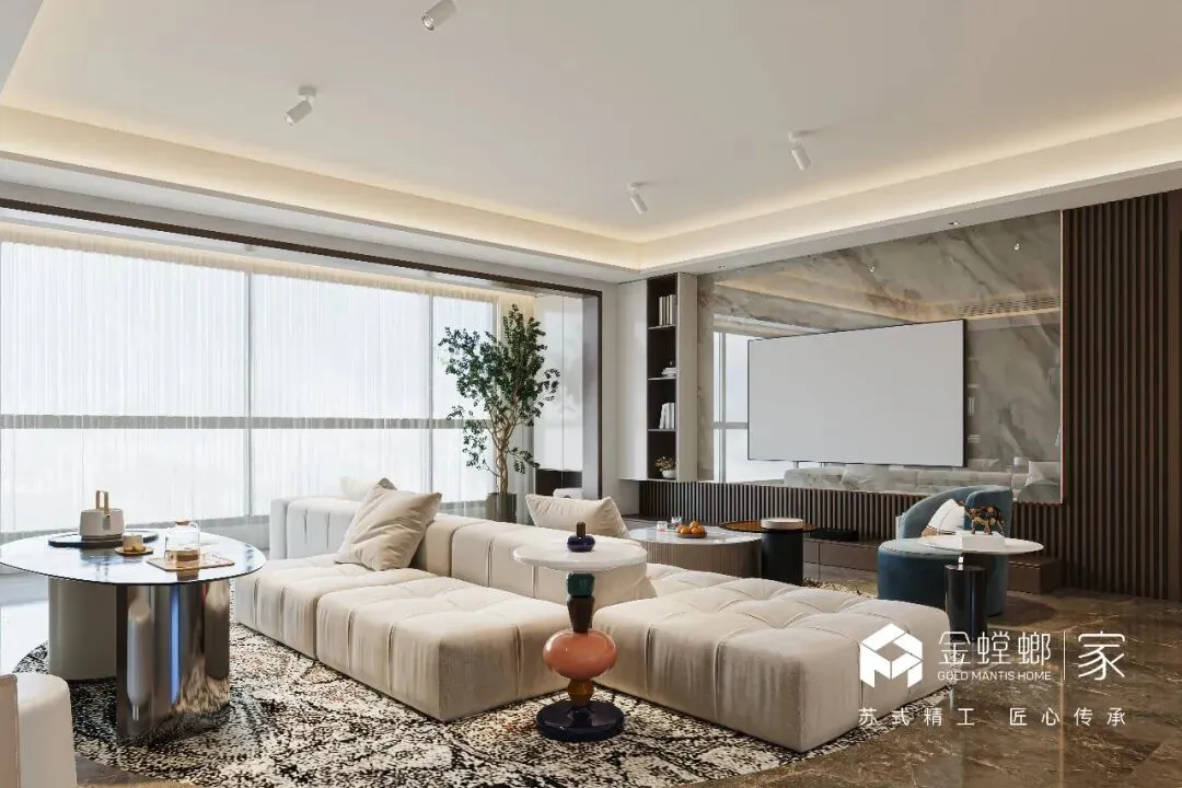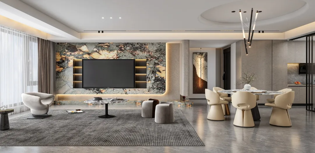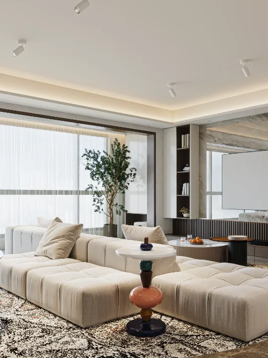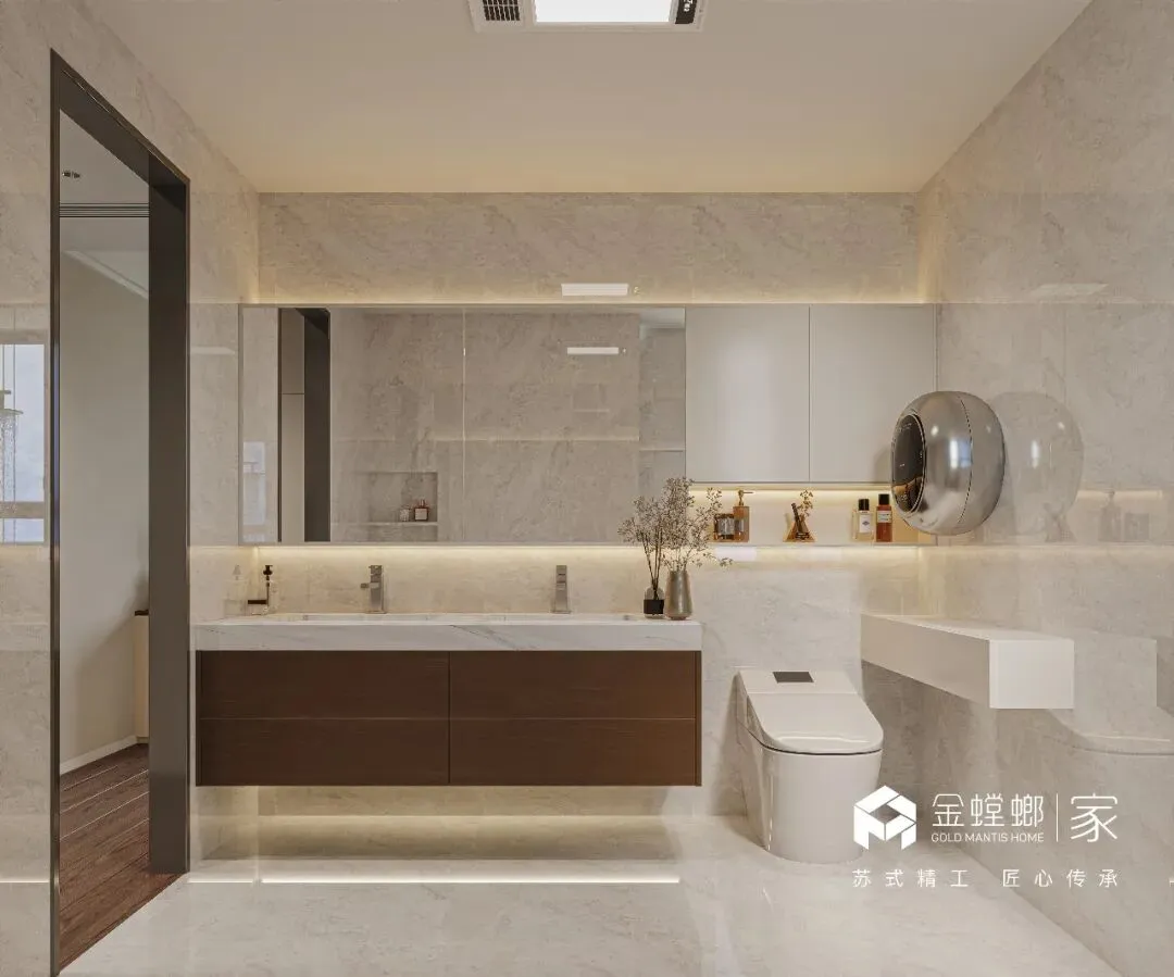 电梯间定制鞋柜,是家与外界的温柔过渡。深木色柜体与嵌入式灯带,在公共空间里勾勒出专属的精致感。悬空换鞋凳与开放格的设计,兼顾了实用与美学,让每一次归家都从从容的仪式感开始,把喧嚣隔绝在门外,把安心迎进家门。浅米色的模块沙发,如云朵般柔软,搭配黑白纹理的艺术地毯,奠定了空间柔和又不失个性的基调。大理石电视背景墙与木格栅的组合,在极简中透出高级质感。无主灯设计让光线均匀洒落在每一个角落,营造出松弛而通透的氛围。客厅以开阔尺度,承载生活的温柔与诗意。浅淡色调舒展空间,柔和光线漫洒每一处角落,简约中透着高级感。没有多余装饰,只有舒适与松弛。静坐其间,时光缓缓流淌,喧嚣被隔绝在外,只剩宁静与治愈,这便是家最动人的模样。餐厅是生活与温情的交汇点。简约餐桌围合出温馨氛围,柔和灯光轻笼桌面,雅致而不浮夸。每一餐都充满仪式感,每一次相聚都自在舒心。在这里,美食与陪伴相融,烟火与雅致共生,简单日常,也能过得诗意从容。厨房以简洁利落的布局,让烹饪成为一种享受。通透光线、干净色调、合理动线,让操作自在流畅。没有杂乱拥挤,只有清爽有序。在这方小天地里,柴米油盐也充满诗意,用心生活的美好,藏在每一次烟火升腾中。主卧是专属于自己的心灵归处。低饱和色调营造舒缓氛围,柔和光线包裹整个空间,简约而不失质感。在这里,无需刻意,不必匆忙,卸下所有疲惫,让身心彻底放松。一枕安眠,一夜好梦,每一天都被温柔与安心唤醒。简洁的梳妆台与圆润的妆凳,线条流畅而优雅。墙面的艺术画与镜面设计,在满足功能的同时,也为空间增添了一抹艺术气息。女儿房兼顾休憩与实用,简约设计保留足够留白,柔和色调带来宁静感。空间通透轻盈,功能灵活多变,既可安睡,亦可静心独处。不局促、不压抑,自在随心,每一种使用方式,都藏着对生活的体贴与用心。卫浴空间以干湿分离打造清爽体验,简约线条与温润材质相融。干净通透,雅致大方,细节之处尽显品质。在这里,褪去疲惫,洗净纷扰,每一次使用都是一场放松,简约而不简单,舒适与美感同在。