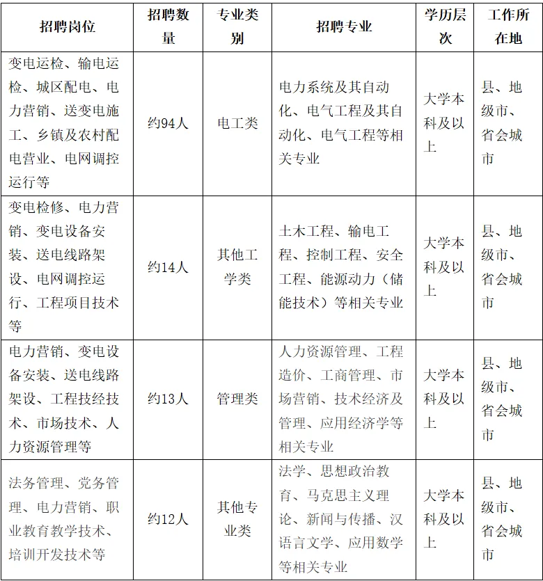 根据国家电网有限公司统一安排,国网山西省电力有限公司2026年第二批高校毕业生招聘主要面向电工类、其他工学类、管理类、其他专业类大学本科及以上学历应届毕业生。