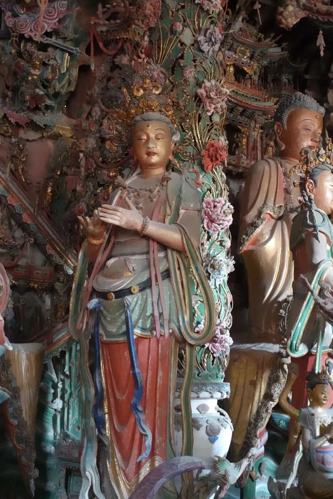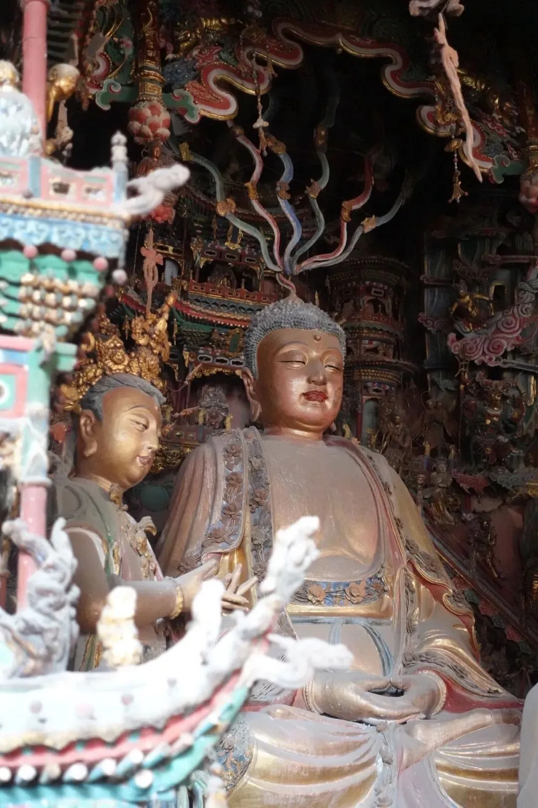 山西博物馆博物馆是按照不同主题来分类的,以“晋魂”为主题,由文明摇篮、夏商踪迹、晋国霸业、民族熔炉、佛风遗韵、戏曲故乡、天下晋商等 7 个历史文化专题。展品从旧石器时代到清代琳琅满目。特别喜欢这些石器时代的作品,形状和花纹都很经典。山西的佛教文化很发达,在博物馆内有众多石佛雕塑,应接不暇。很喜欢这尊无头的雕塑,身姿非常窈窕。雕刻技艺高超自然。所有的雕塑几乎都直接暴露在你的眼前,触手可及的位置。偌大的展馆只有一位工作人员喊着“别触摸”之类的话术。和文物如此地接触,是只有山西才有的机会吧。很喜欢这些乐俑小泥人,各个形态表情各异,看起来很亲切。战国时期的水晶手链,和今天的看起来已经没有差异,晶体透亮圆润。晋祠在太原郊区天龙山脚下的晋祠,86版西游记曾经在这里取景一周,所以很多建筑面前都有西游记打卡点。文化类景点建议都在现场找一名讲解员,体会更加深刻。讲解内容丰富,但是信息很碎片,没有帮听者整理出清晰的脉络和逻辑(算了,职业病又犯了)。戏台山西是戏曲文化的中心,如今在境内现存3500多古座古戏台,这一座是其中的杰出代表。图片当中是戏台的后方部分,也是西游记动画片里一处经典场景借鉴的来源。闭嘴的母狮子图片当中的两头狮子,都是600多年前的,可以随意触摸,再次体现山西古董之多。在讲解这两头狮子的时候,导览员说道:“男左女右,左为尊,左边的都是雄狮,右边是母狮子,她脚下有两头小狮幼崽。另外,由于地位低下,母狮子也是闭着嘴的。”(细节当中也体现了中国古代以及北方地区相对封建的一些理论)圣母殿——晋祠当中最重要的建筑晋祠内一切建筑都是以圣母殿为核心扩张建设的。是晋祠的主殿,殿内供奉的是西周时周武王的妻子、周成王和唐叔虞的母亲、姜子牙的女儿邑姜。殿内保存43尊宋代彩塑,其中41尊为北宋原塑,包括圣母像及侍从像,生动反映了宋代宫廷生活场景。现在大殿前盘踞的龙当中有两只已经活跃在网络上,人们亲切地称为“点赞龙”和“比耶龙”(图片左起第一只手势像在点赞👍,第二只像是比耶✌️)殿内的彩塑侍女和女官们依然颜色鲜艳,在昏暗的光线下还能看出她们生动的表情神态。闭嘴的公狮子同样是石狮子,在圣母殿前面的两只就反过来了。圣母殿整个是一座遵从女性修建的建筑。所以母狮子这回长着大口,公狮子则相对闭嘴。可见对于女性来说,掌握权力就是最要紧的事。圣母殿旁边还有一处为纪念女神而修建的庙宇,水母娘娘。走出博物馆之后在晋祠公园买了两个冰箱贴,都是戏台和影视剧结合的场景。戏台在西游记、浪荡山小妖怪里的样子。沾片子-山西天妇罗之前听播客推荐的特色美食,我内心的预设烹调方式是油炸,结果竟然是煮的。把三七叶、豆角、玉古叶等蔬菜的一面沾上面糊,直接下锅煮。看起来简简单单,味道却出乎意料的好。虽然是纯素的,但是吃出了类似饺子的感觉,应该是沾水的功劳,玉古叶吃起来没有蔬菜的味道和筋膜感,面糊也没有厚重的面香,都只是提供出一种柔软易嚼的口感。十分推荐!晚上踏着夕阳,我再一次一个人走在去高铁站的路上,忽然间感觉此刻的我和无数个赶路的我重合了。我是当下的,又是流动的,是无数个经历构成的我。感慨万千,继续出发吧,向着夕阳,向着朝阳。赶到酒店刚好八点多,准备休整睡下,迎接第二天的行程。本来不太吃苹果的我,到了山西突然发现水果蔬菜选择少了。于是老实地从前台带了一点水果回去吃下。本来已经吃很饱了,但是本着体验第一的想法。还是点了一个特色小吃,炒拨烂子(其实就是土豆裹着淀粉,先煮再炸)part 2 临汾起了大早,七点半就要集合出发。还好集合点距离我的酒店只有800米,也还好自己没有拖延。因为在这个点竟然只接我一人。上了车发现竟然已经差不多坐满了。小西天临时报的1日旅行团还不错,小西天下车后等待导游买票的过程。一群年轻人就这样排好队伍,特别像学校春游。小西天这座佛庵要建在高处,需要拾级而上,200步阶梯,一口气走完还是比较累的。下方有一个小湖泊,冬天冰封着。由于湖泊形状酷似佛家法器——如意,所以唤为如意湖。寺庙的大雄宝殿是所有人前来的主要目的,这座不大的殿内有上千尊佛像齐聚一堂。佛寺的猫咪伸手过去就拿脑袋来蹭我,很乖巧安静。牛肉丸子面距离12点半集合时间还有一小时。走出景区之后,我径直来到了河对面的商业街尝试临汾特色——牛肉丸子面,是一道比较重口味的食物。油辣椒很香,牛肉片味道不错,但是丸子淀粉太多了。整个山西美食的特色就是碳水,肉类和蔬菜都很少。壶口瀑布从来没看过黄河瀑布的我,内心还是很期待的。虽然在枯水期,但是依然气势磅礴。在这里300米宽的河水骤然收紧为50米,形成了千军万马的奔腾气势。在下车之前导游简单介绍了壶口瀑布景区内的“龙洞”景点,据说一年当中开放的时间很少,需要根据水量而定,通常是水量小的时候。龙洞的入口非常不起眼,也没有人。发现之后我打算下来看看。在这里,可以真正感受到黄河之水天上来的感觉。虽然是较小的水量,实际上水雾会溅到身上,河流涌起的波涛也随时拍打着我们脚踏的石面上。part 3 闫店村两天完整的旅行完毕之后,前往最后的目的地。朋友的老家襄汾县。入住朋友定的酒店之后,我就再也没有