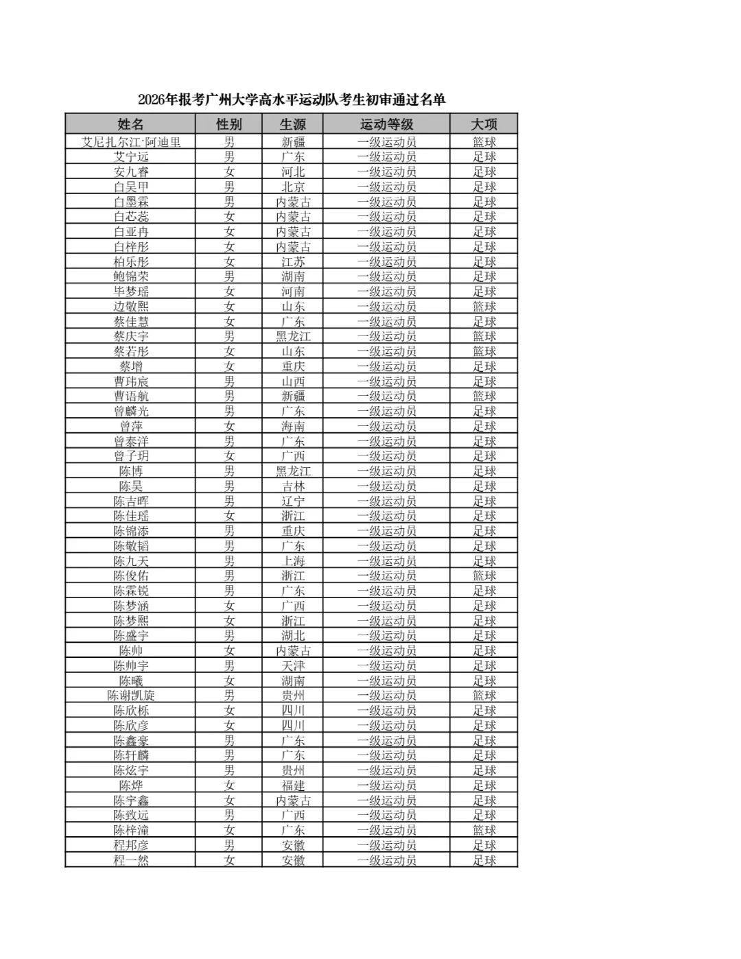 根据教育部有关文件和《太原理工大学2026年高水平运动队招生简章》等规定,我校对2026年高水平运动队考生的报名材料进行了初审,确定报名资格初审合格名单,现予以公示。