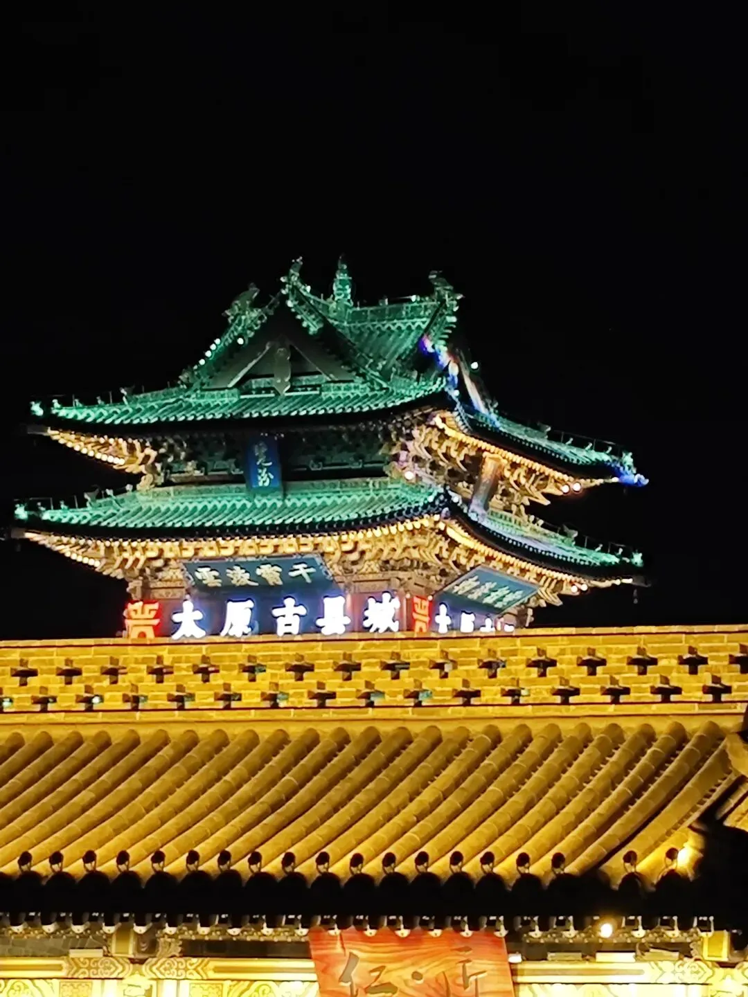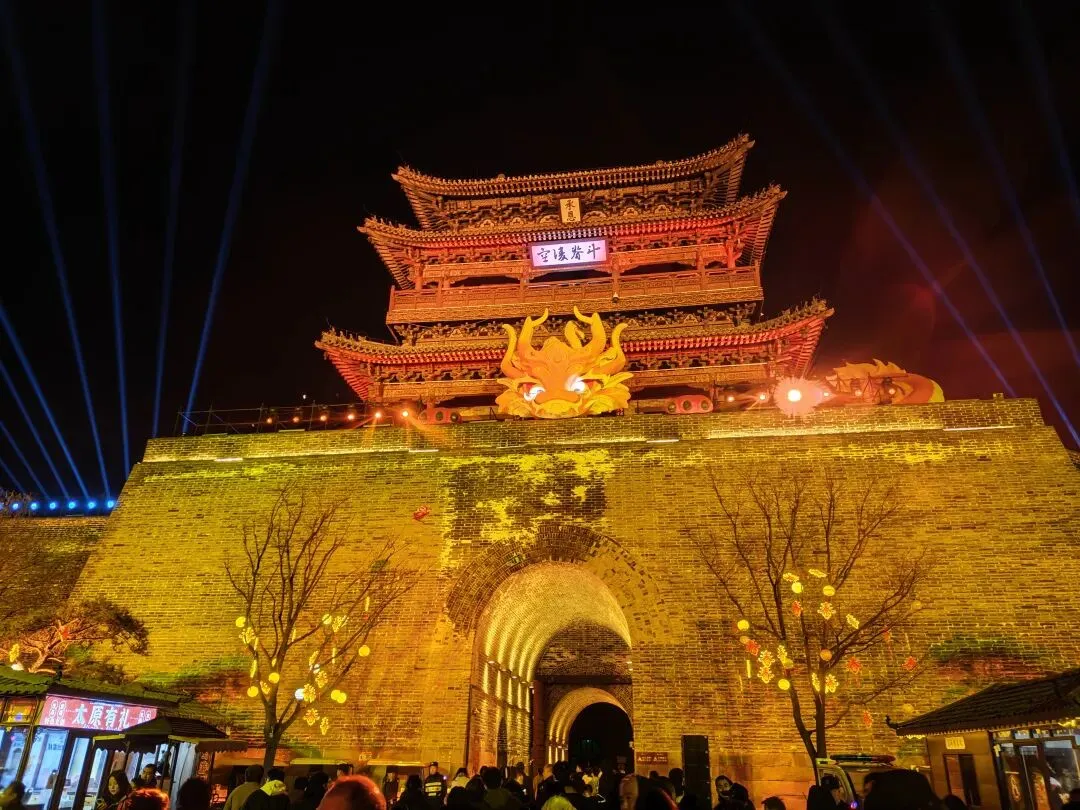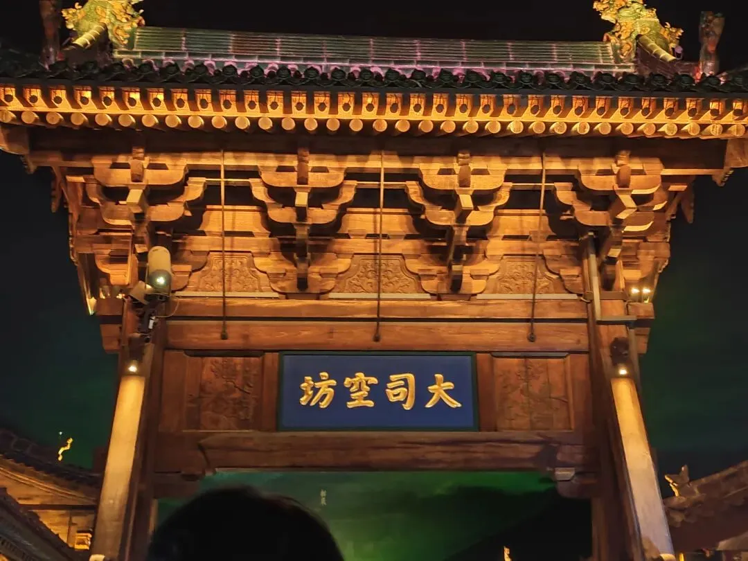 继续行走了几个景点,宫囍馆、县衙、《满江红》影视基地,处处雕梁画栋、金碧辉煌。古晋阳的夜晚是璀璨的灯城,流光溢彩,恰如凤凰涅槃。