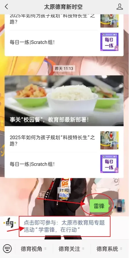 2.关注太原德育新时空官方微信公众号,私信回复“雷锋”,点击链接即可参与活动!