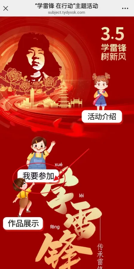 1.登录太原德育新时空网(http://www.tydyxsk.com)或关注官方微信公众号,进入“学雷锋 在行动”主题活动。
