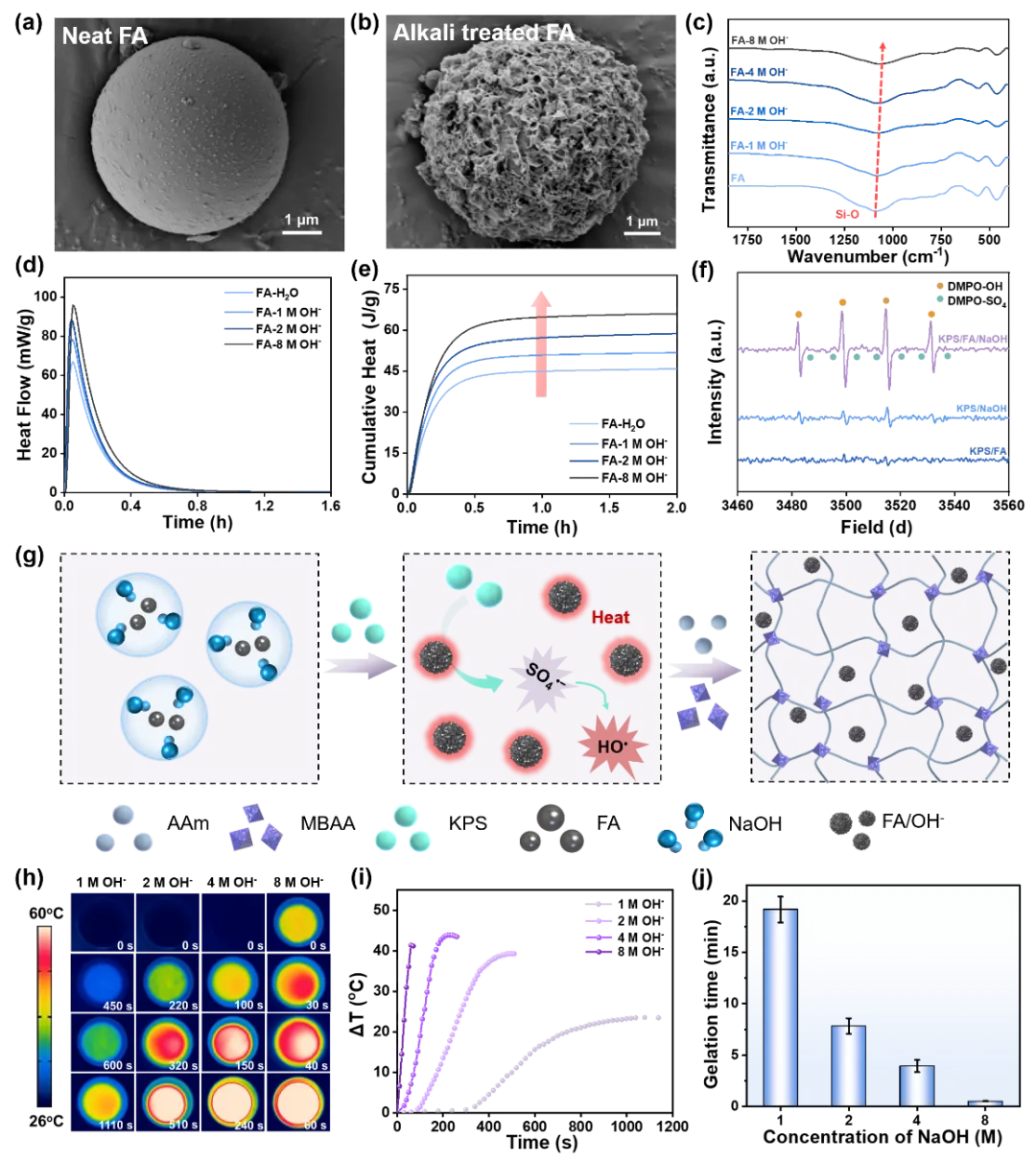 团队通过等温量热、电子顺磁共振等分析手段,揭示了碱激发粉煤灰快速催化聚合的机制: