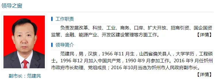 简介:2021年3月任现职;1970年8月生,山西寿阳人,民盟,大学学历,工学硕士学位,1992年7月参加工作。忻州市政府领导最新分工