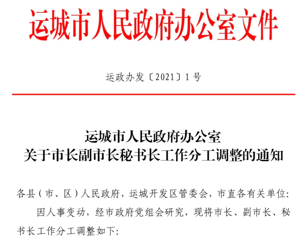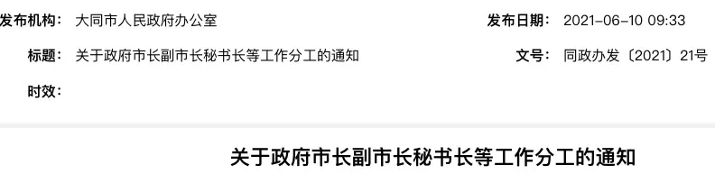 晋中市政府办《关于市长副市长秘书长工作分工的通知》最新发布,精读如下。