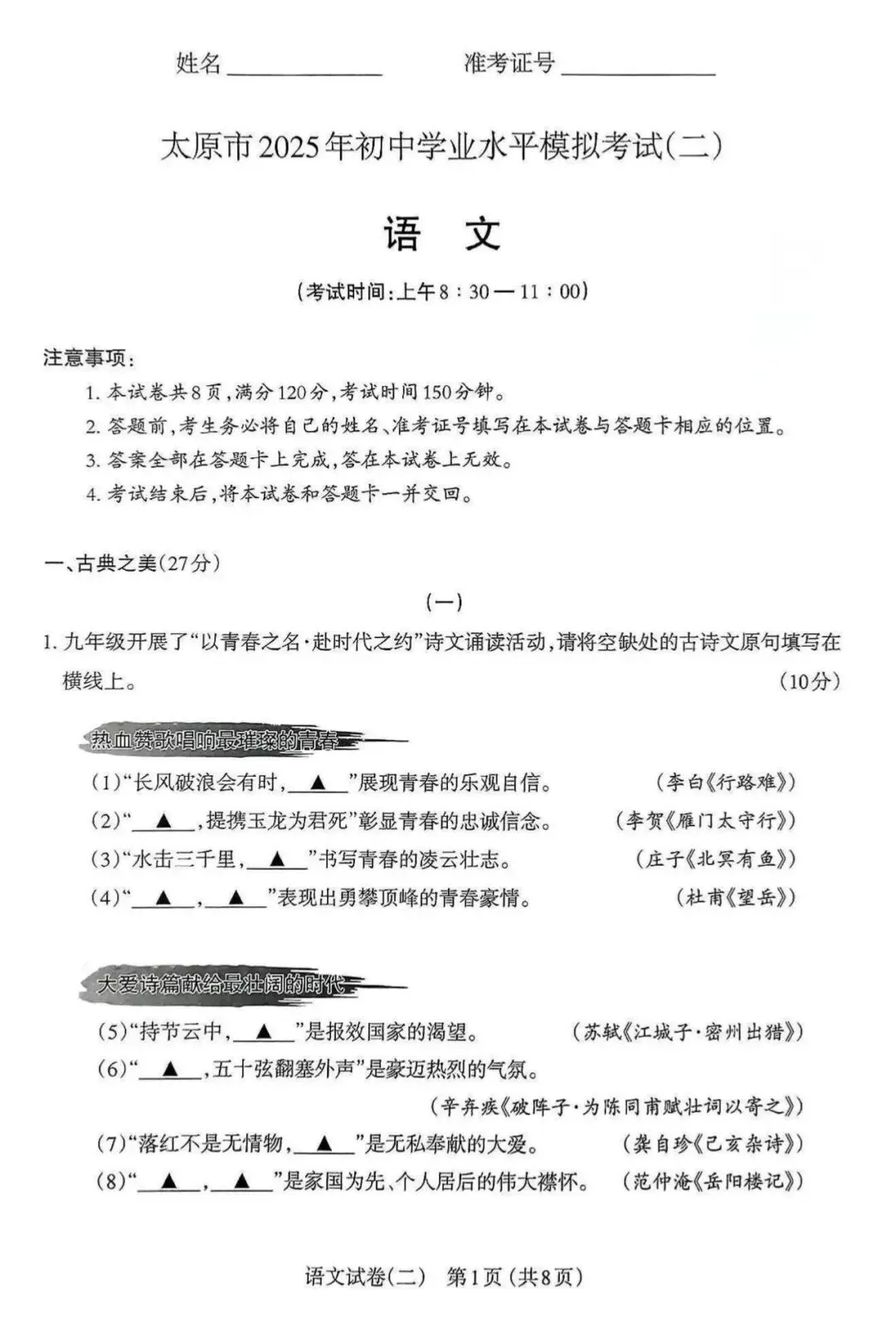 >【语文】太原市2025年初中学业水平模拟考试(二)