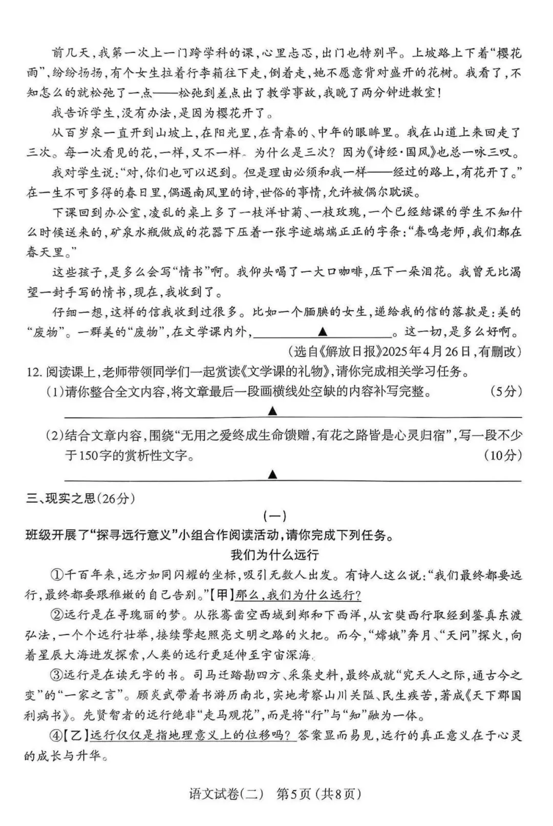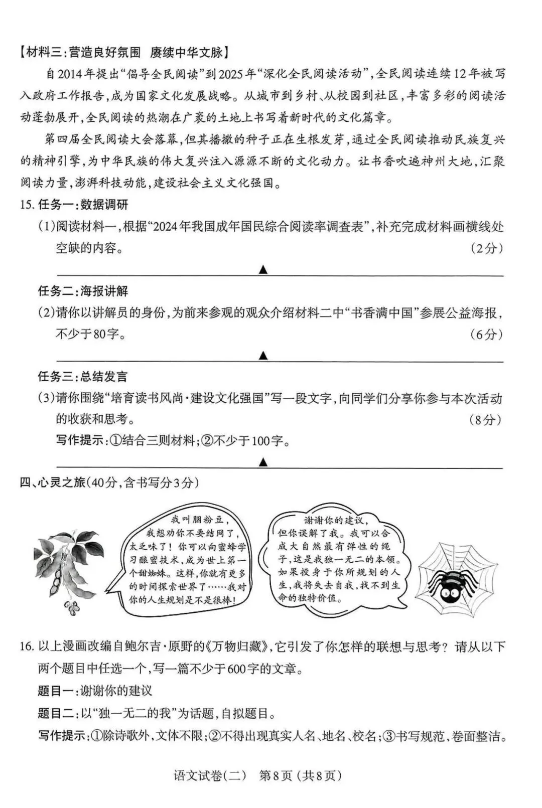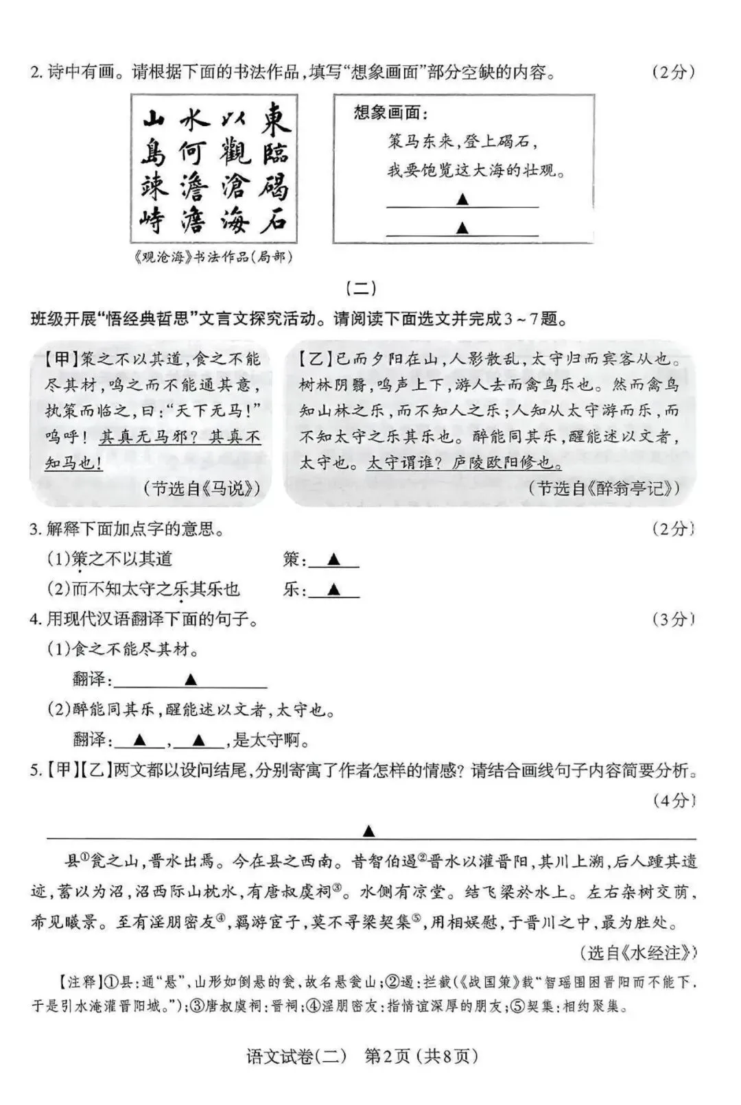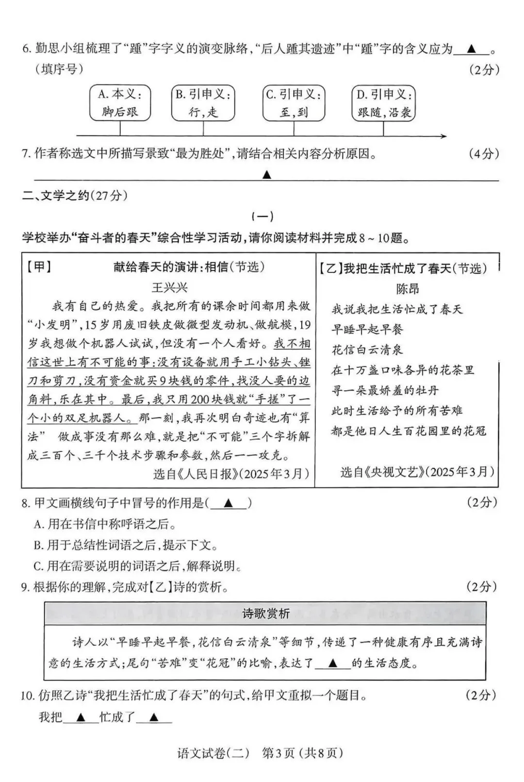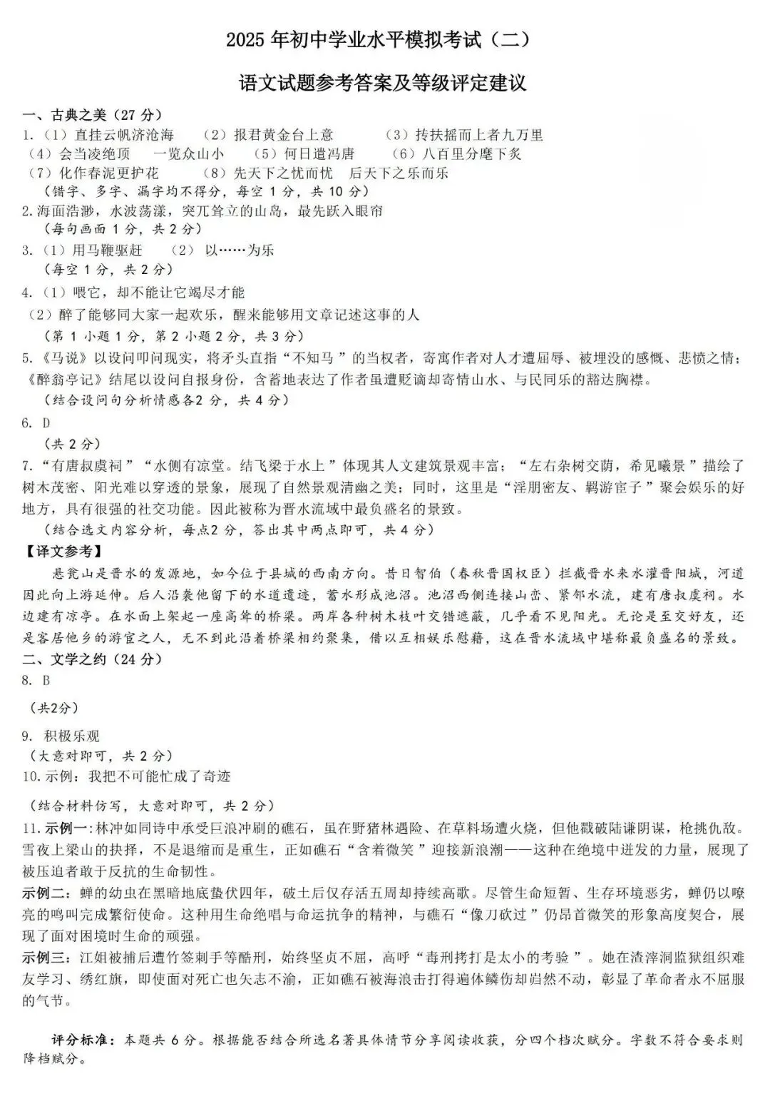 【语文】太原市2025年初中学业水平模拟考试(二)