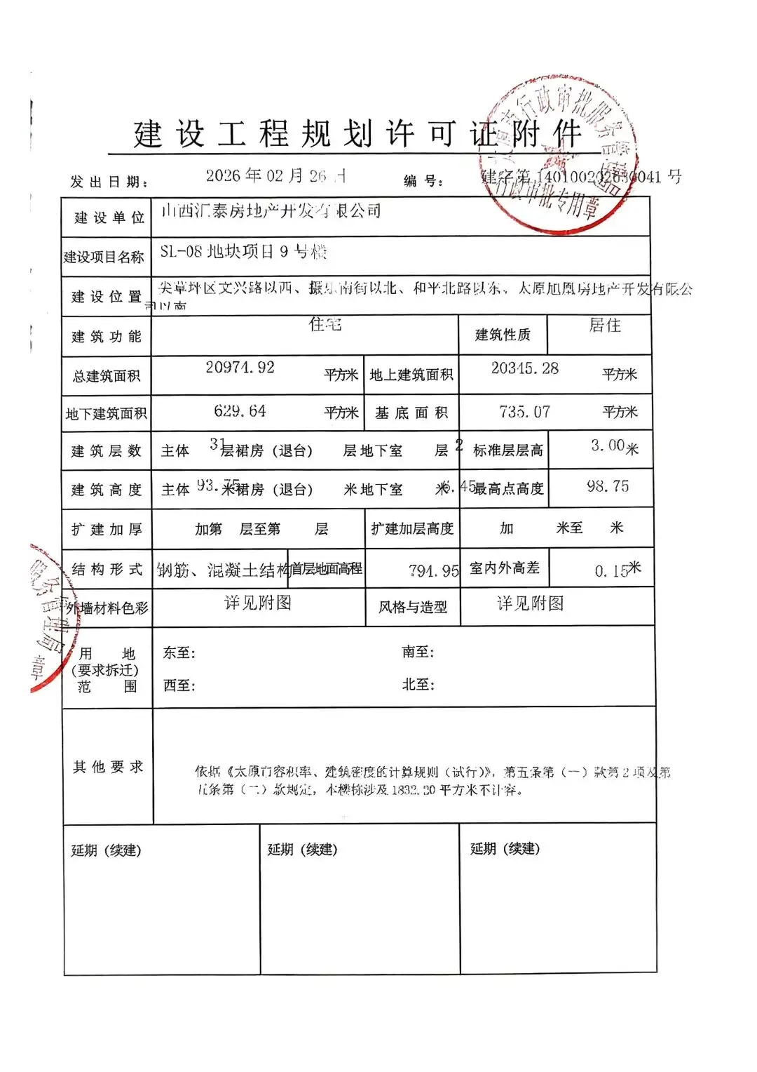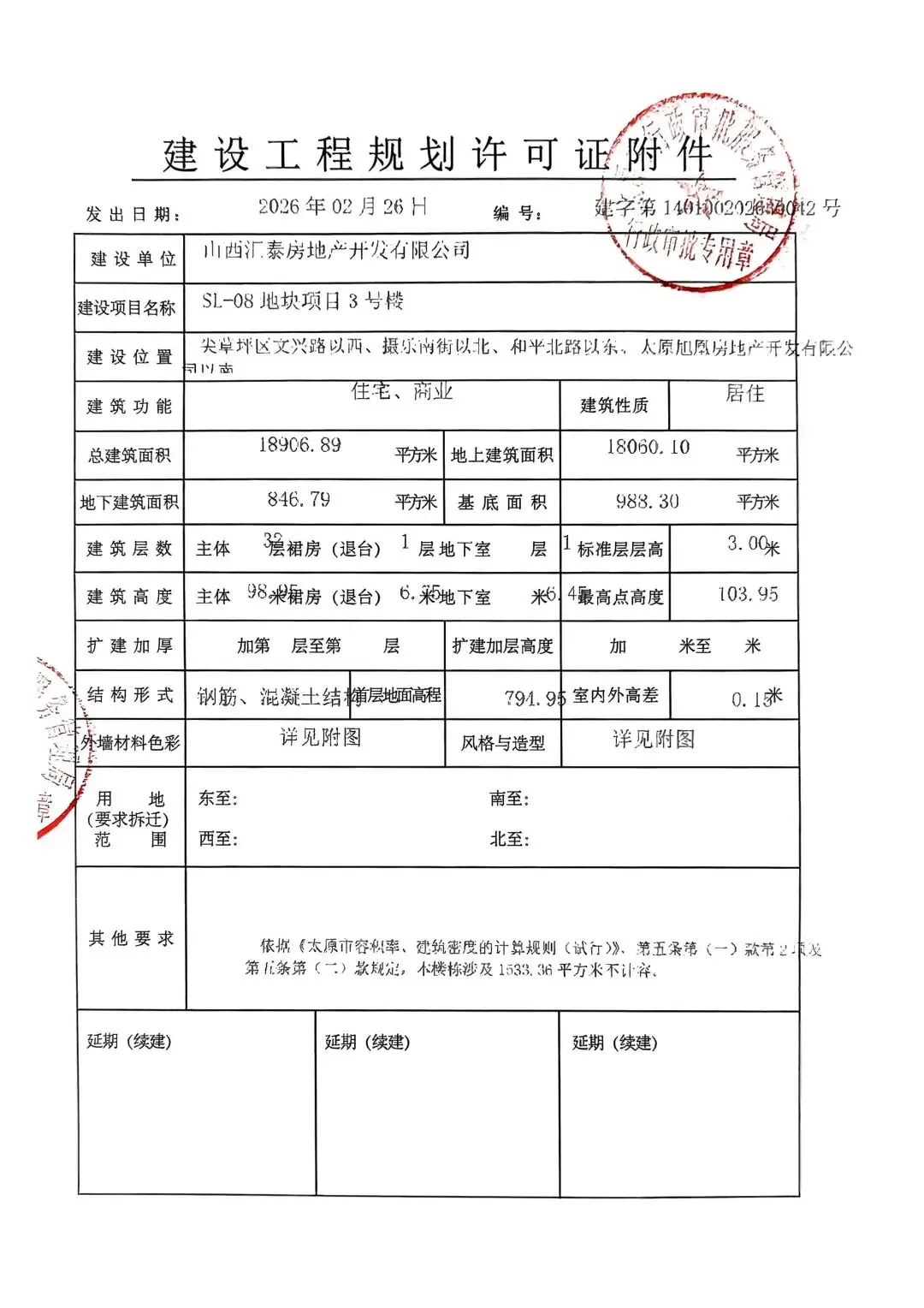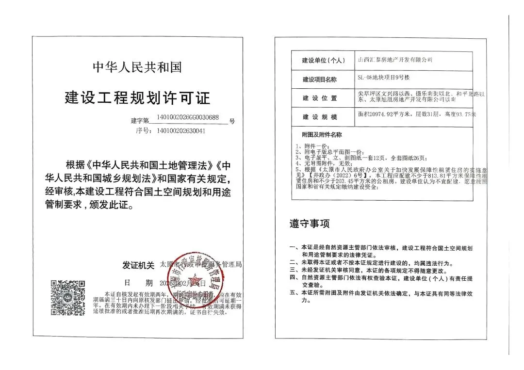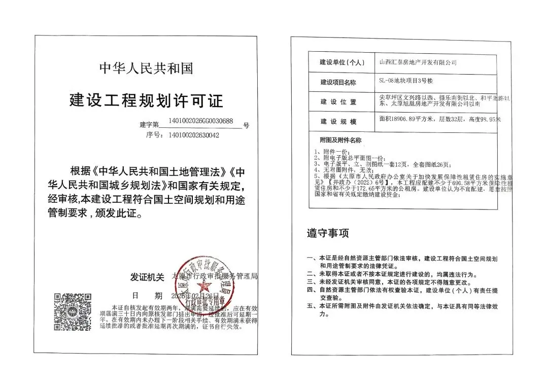 近日,太原市行政审批服务管理局发布了关于SL-08地块项目1号楼、2号楼、3号楼、9号楼、13号楼、14号楼、地下车库1建设工程规划许可证的公告。