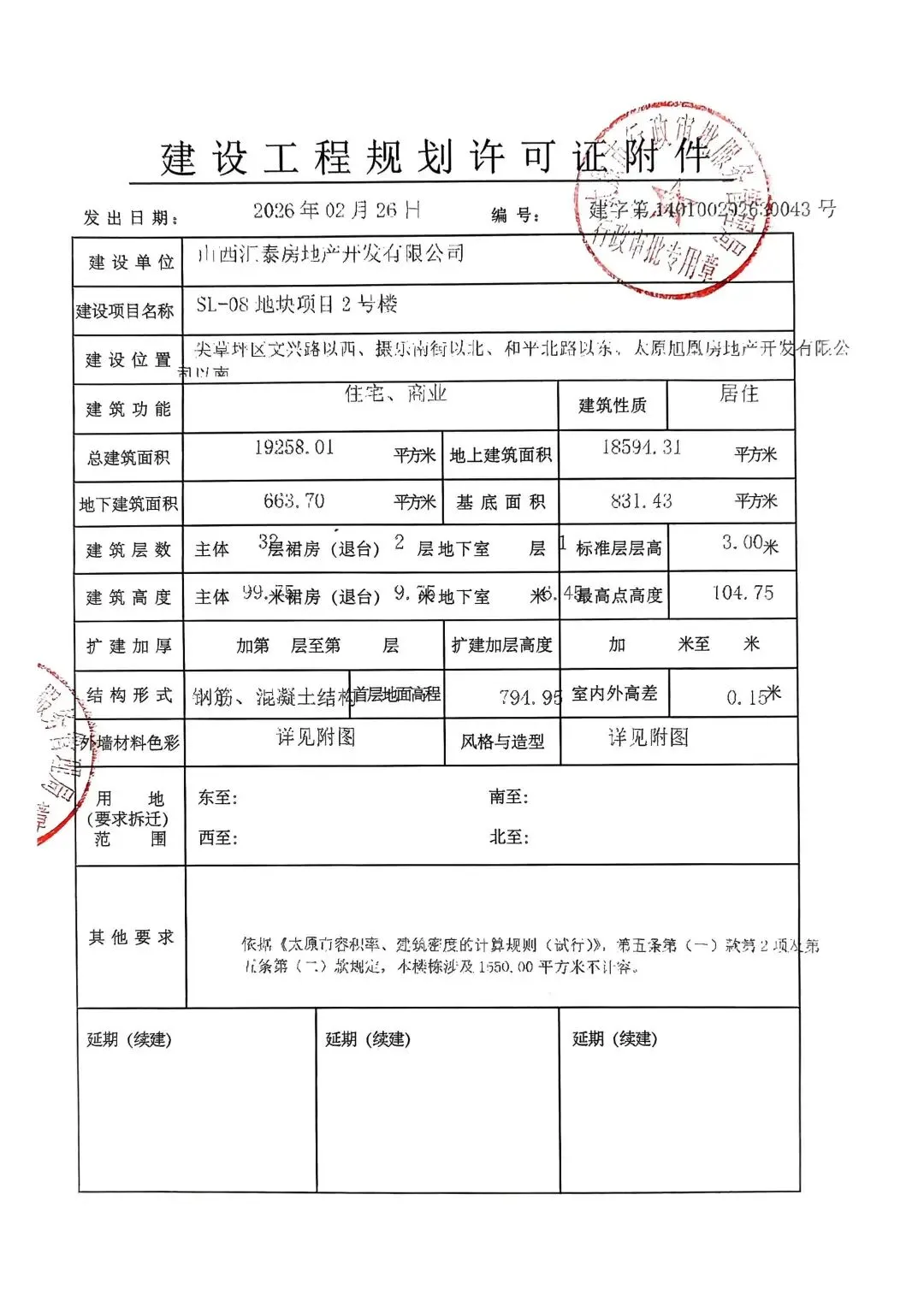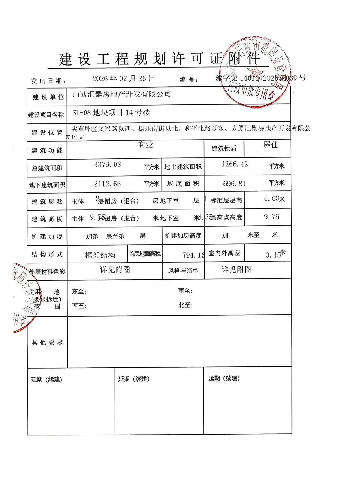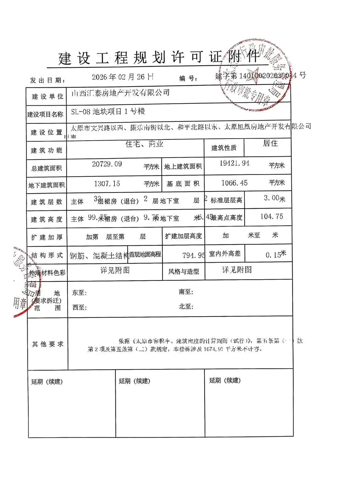 近日,太原市行政审批服务管理局发布了关于SL-08地块项目1号楼、2号楼、3号楼、9号楼、13号楼、14号楼、地下车库1建设工程规划许可证的公告。