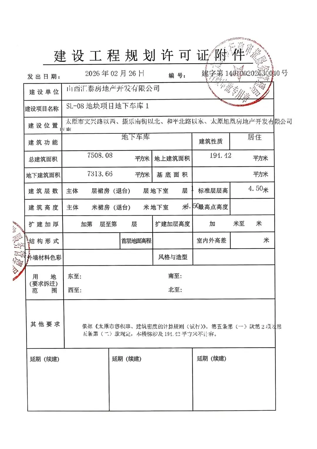 建设单位:山西汇泰房地产开发有限公司