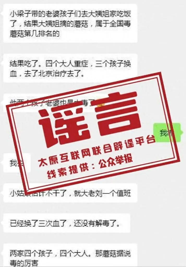 "太原有人食用野生菇中毒,四个大人重症、三个孩子换血?"假的