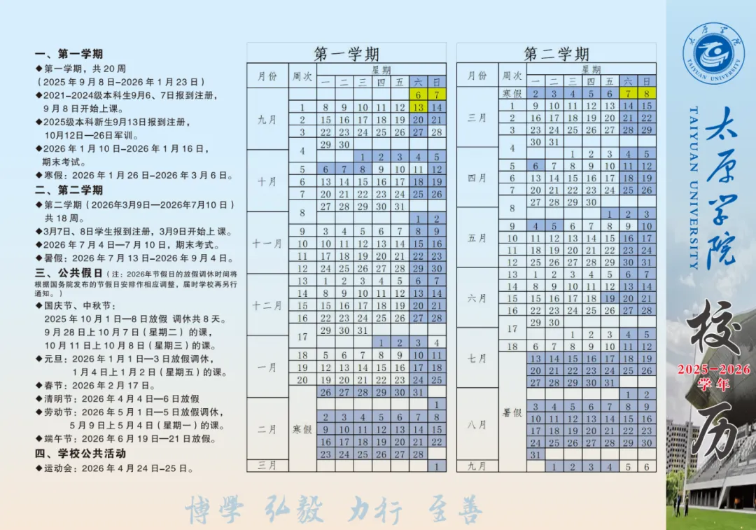 1.学生放假时间为2026年1月23日--2026年2月27日,2月28日(星期六)、3月1日(星期日)学生报到注册,3月2日(星期一)正式上课。