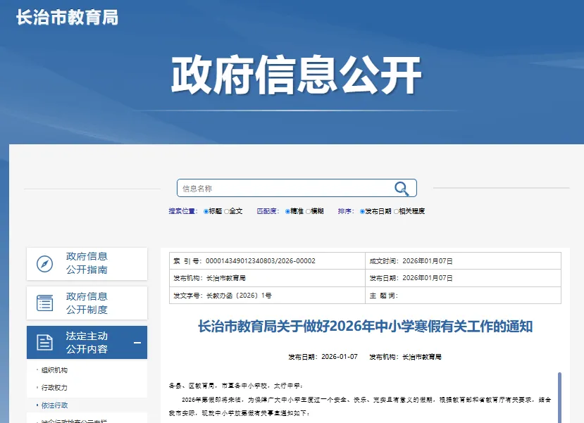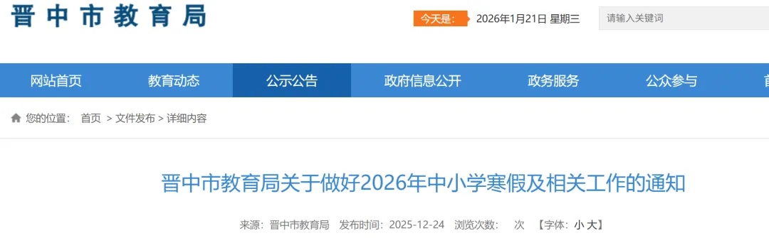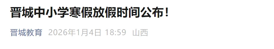 ✅晋中市义务教育阶段学校、中等职业学校寒假自2026年2月6日(农历腊月十九)起,2026年3月4日(农历正月十六)止,3月5日(农历正月十七)正式上课。