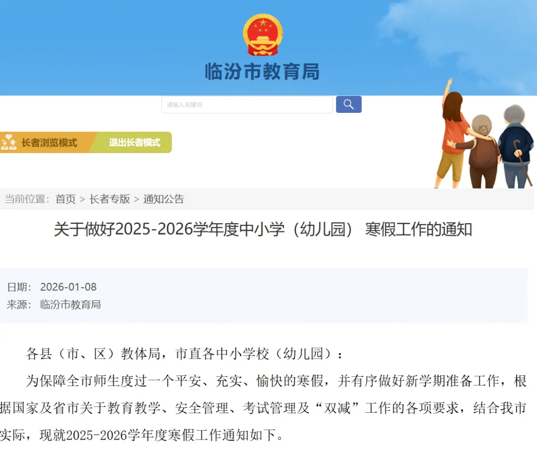 小编提醒:太原义务教育寒假放假时间以各学校通知为准!高中学校放假安排以各学校通知为准!