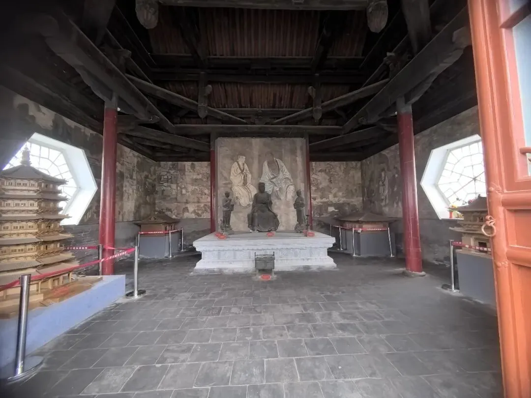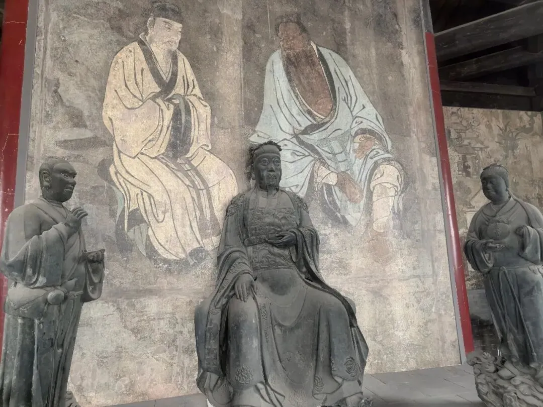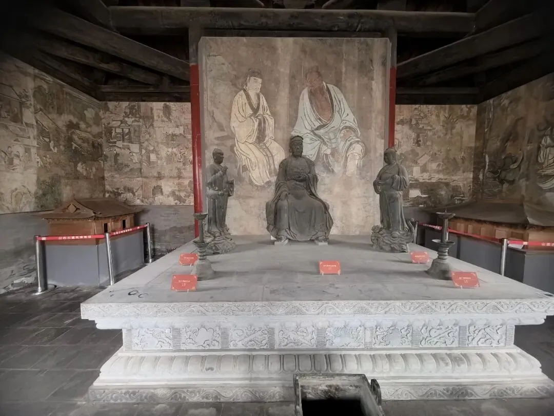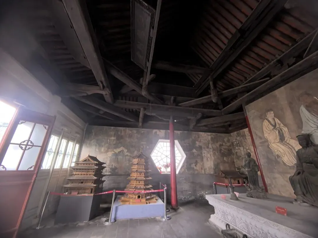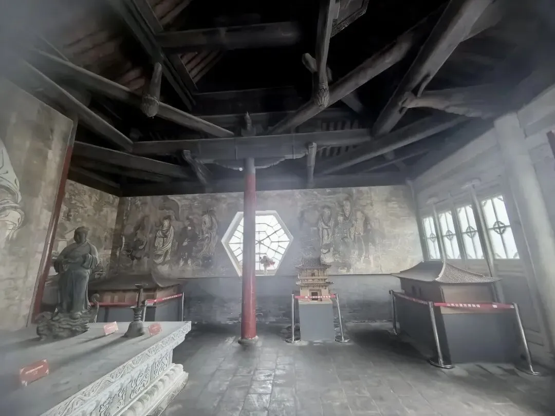 作为山西古建筑博物馆的核心展厅,这里不仅陈列道教文物,更以自身为“活文物”,完整展示了明代木构、瓦作、彩画、造像的营造体系,其抹角梁构造、简化斗拱、蓝琉璃瓦作等特征,与明太原府城其他遗存建筑高度同源,是研究明代山西地域建筑的“标准样本”,更是闹市中守护古建文脉的精神地标。