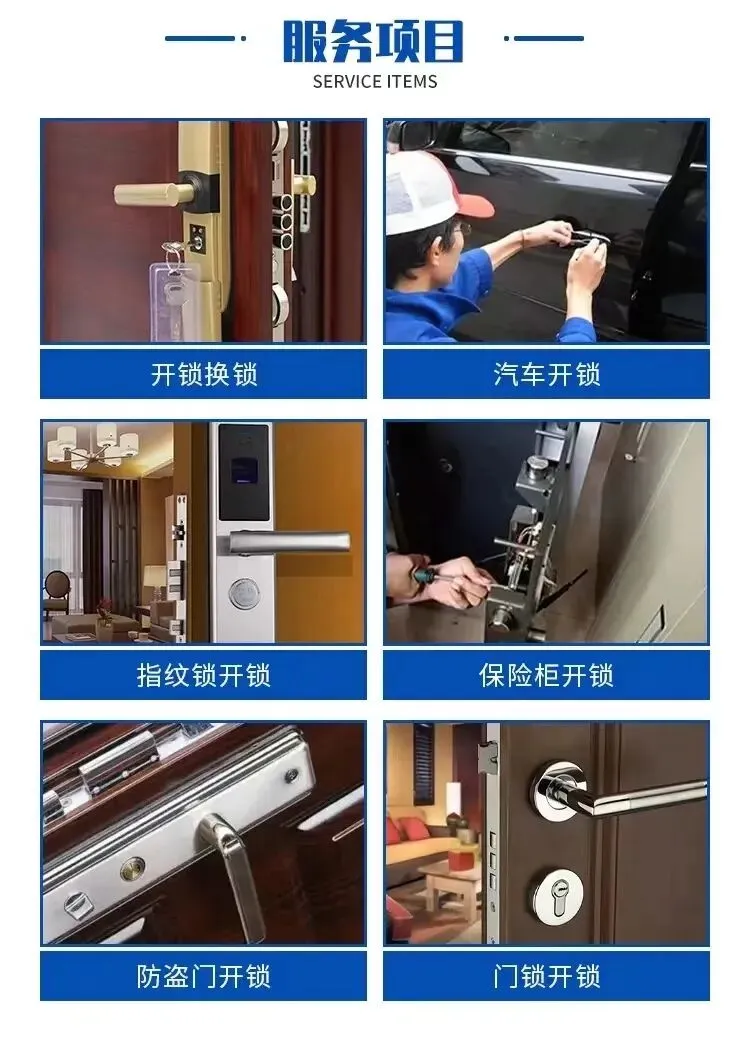 紧急开锁:24小时全天候服务,无论何时何地,我们都能为您解决紧急开锁问题。